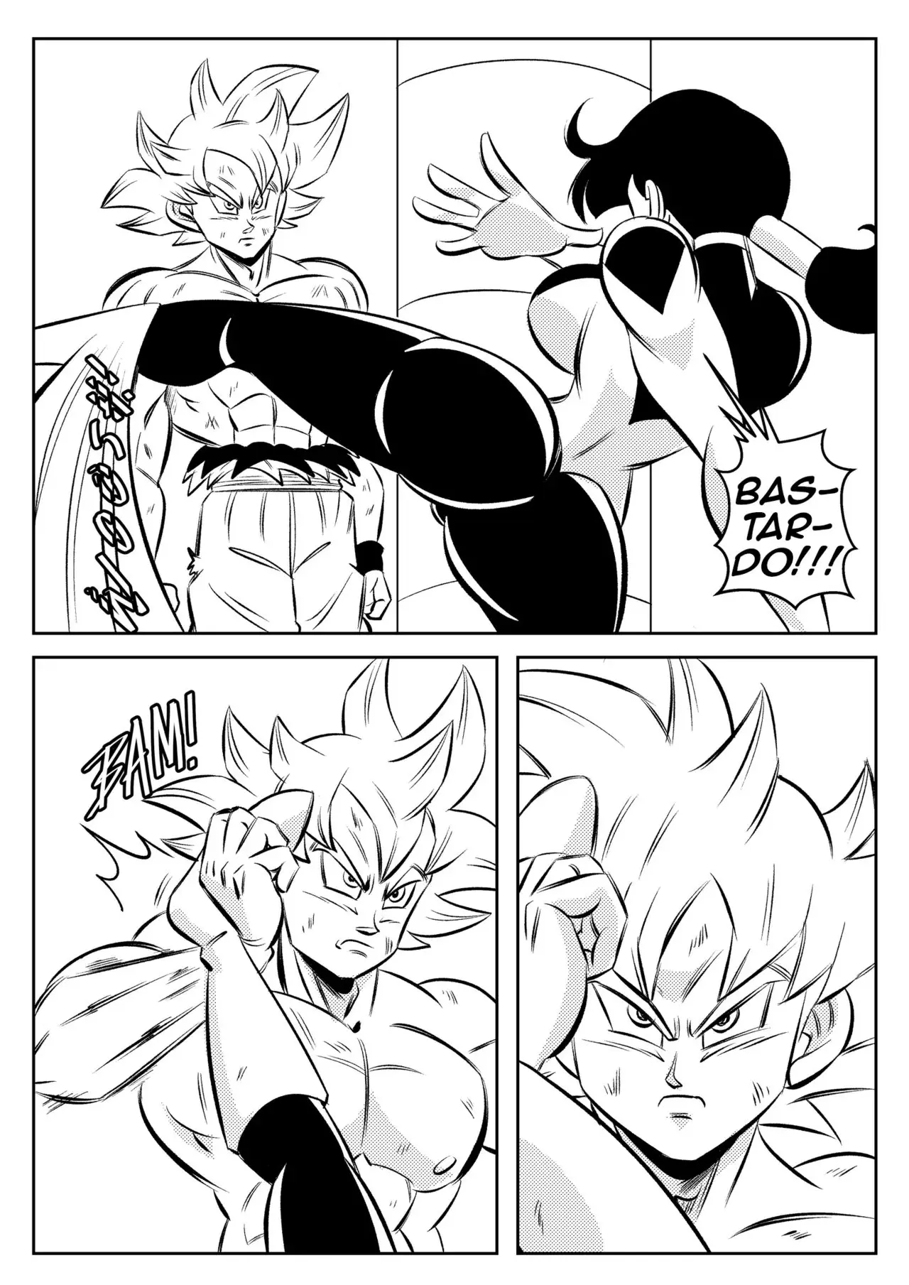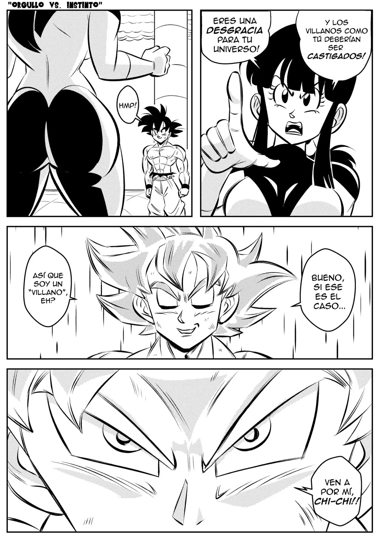 Milk le dice a Goku que es una desgracia para el universo, y a los villanos hay que castigarlos. Lo que despierta el ultrainstinto del guerrero para esquivar el ataque de Milk. Algo que solo hace para que, cuando ella siga de largo, le pueda dar una buena nalgada. Si ella piensa que es un villano, eso es lo que le dará. Tomándola por la fuerza luego de una patada de Milk. Y atrayéndola hacia él para besarla y tocar un poco de su culo. Algo que era una distracción para sacarla de la plataforma y ganar.