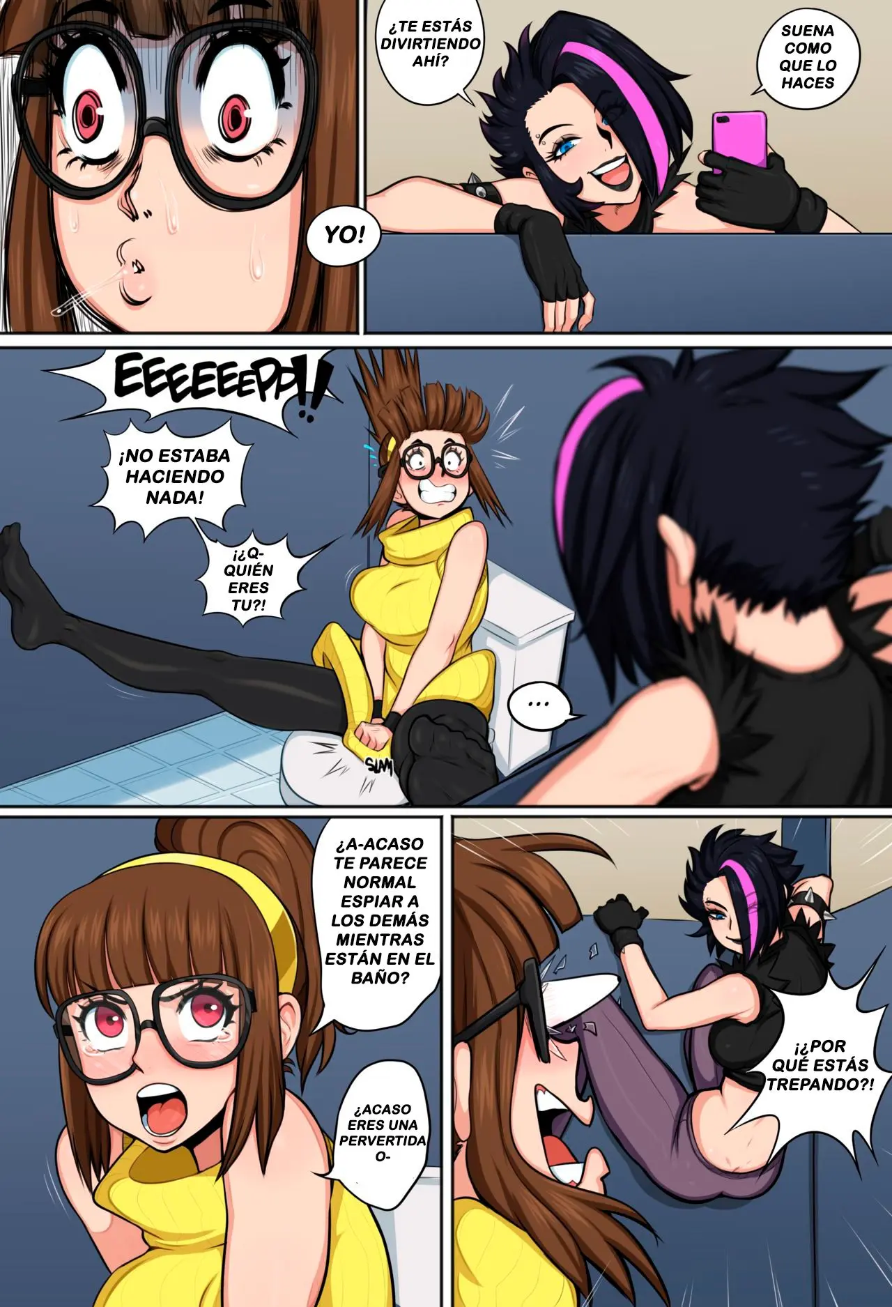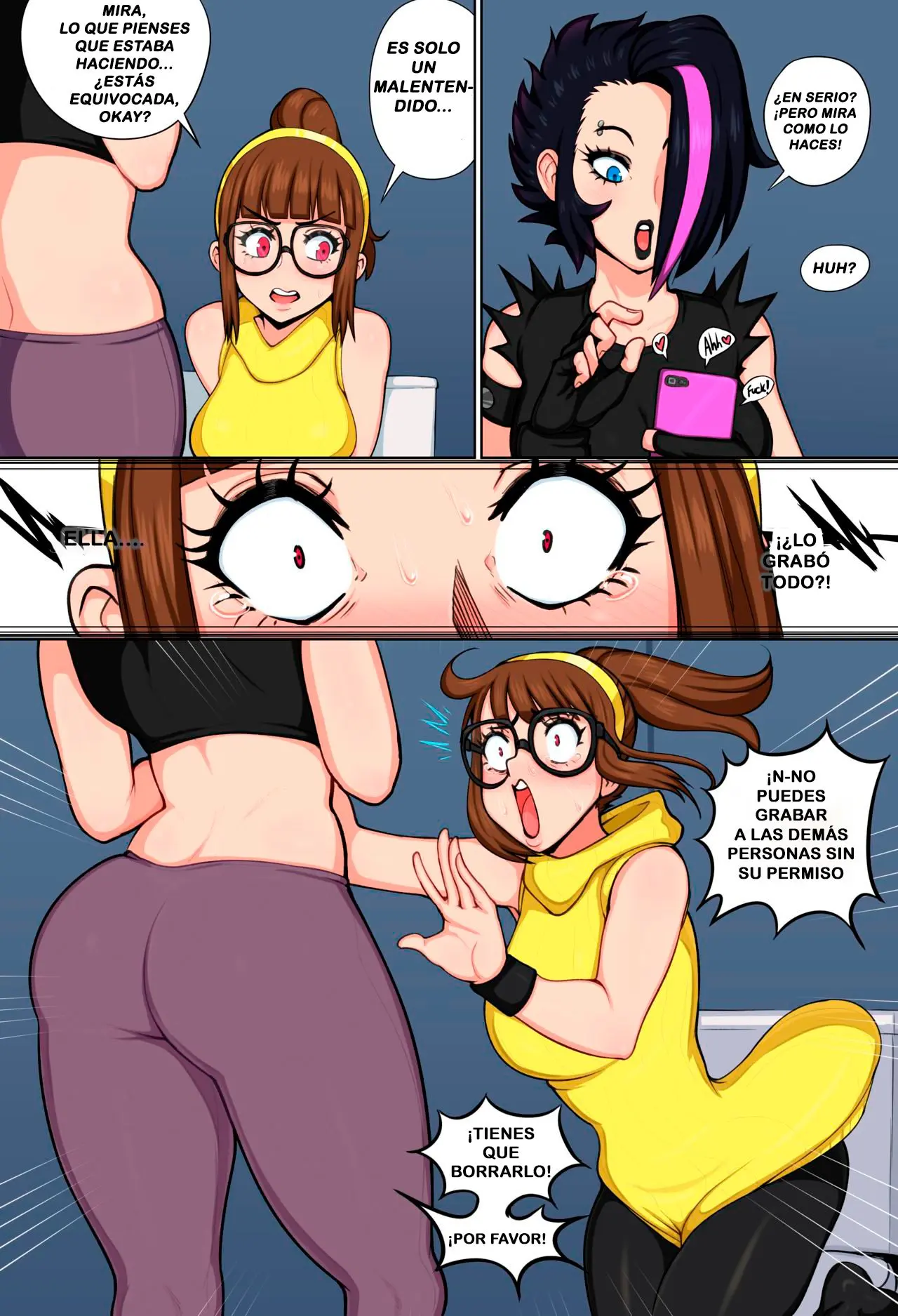 Justo cuando estaba por correrse, escucha una voz y a una chica con un teléfono. No debería estar espiando en su cubículo, pero mucho menos trepar el muro y entrar con ella. Así puede mostrarle el video que ha hecho de cómo se toca. No tiene más remedio que rogarle que lo borre, arrodillándose para que nadie se entere de su secreto.