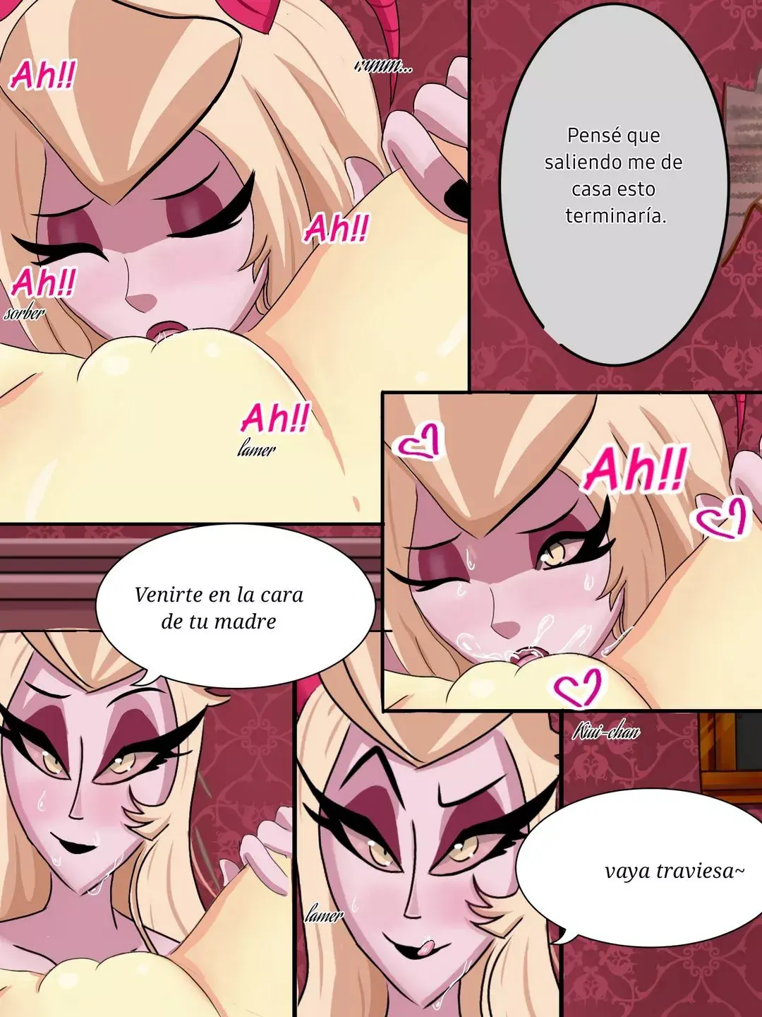 Lilith y Charlie frotan sus coños uno con otro. Aunque Charlie tiene su mente en ambos lugares, con su madre sintiendo lo que están haciendo y, por otro lado, contándole el porqué se fue, ella realmente quería ayudar a los ciudadanos a ser mejores personas. Pero sobre todo quería redimir sus propios pecados. Aunque cree que esto sería imposible, ya que están en el mismísimo infierno, el pecar es algo tan normal y cotidiano. Incluso ella misma comienza a creer que la redención es absolutamente imposible.