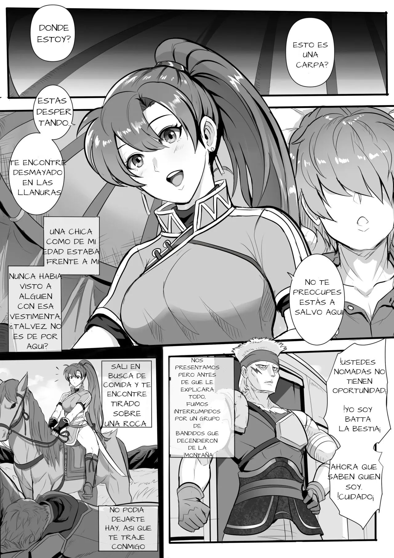 Un chico despierta en una carpa junto a la hermosa Lynn. Ella lo encontró desmayado en las llanuras y no pudo dejarlo allí tirado, necesitaba asegurarse de que estuviera a salvo. Gracias a eso se unió a su grupo y comenzó a tener muchas aventuras dentro del mundo de Fire Emblem. Allí lucharon contra unos bandidos que descendieron de las montañas. Pero gracias a Lynn los derrotaron fácilmente porque esta chica es muy buena con su espada.