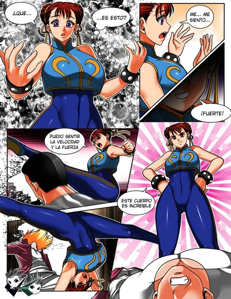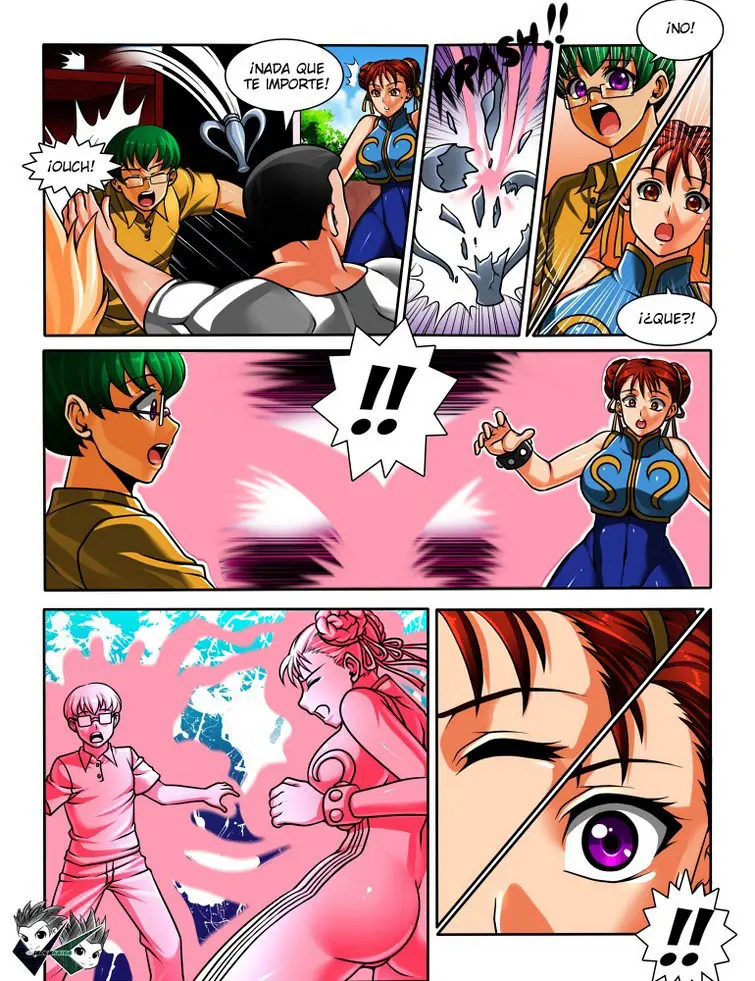 En ese momento, el chico es arrojado por uno de los hombres y uno de los recipientes cae al suelo, liberando lo que contenía. Eso hace que el chico y Chun-Li intercambien cuerpos. Lo que le parece muy confuso al chico cuando siente el nuevo poder que ha adquirido. El mismo que usará para darles su merecido a los abusadores.