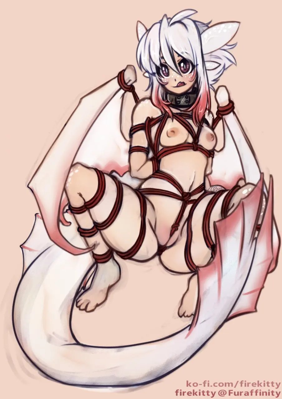 Lo bueno de ser una humana con cuerpo de dragón es que puede usar su cola para el apareamiento. Uno que puede durar hasta 28 horas, lo cual es más de un día completo de sexo para los dragones. Y para conseguir ese sexo, la furia blanca debe usar sus feromonas para atraer la atención de los machos de la zona. Que lo consigue masturbándose el coño con su larga cola para desprender su olor.