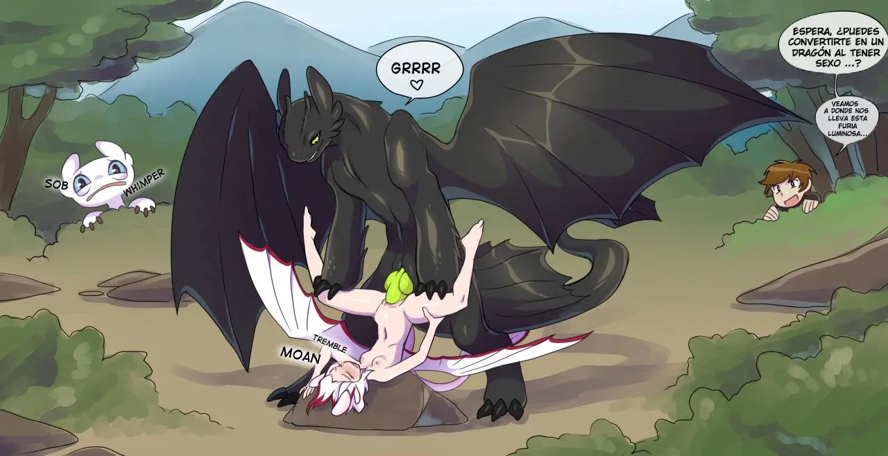 Una versión humana de un dragón tiene sexo con Chimuelo porque es la época de apareamiento de los dragones. Lo cual es observado por Hipo, que se pregunta si puedes transformarte en un dragón si tienes sexo con uno. Y solo hay una forma de comprobarlo: haciéndolo.