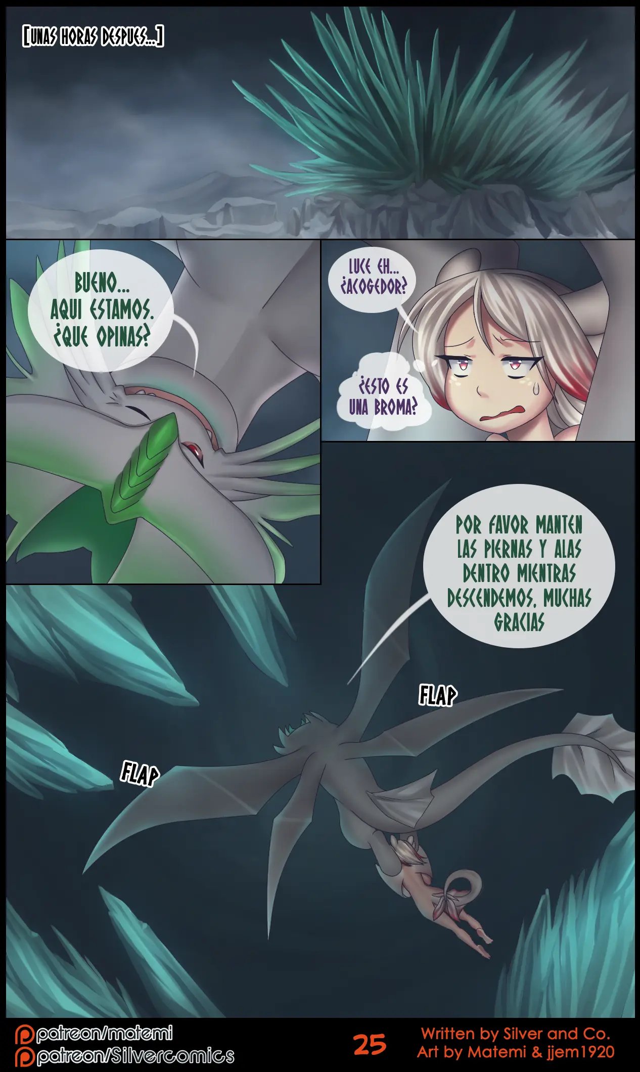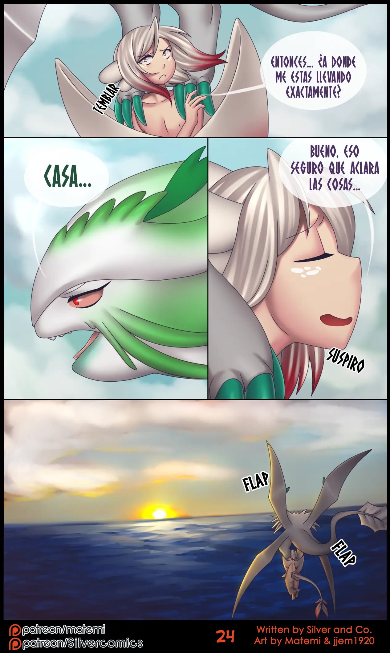 Como ella se ve cansada, el alfa le propone quedarse a descansar. Pero cuando le pregunta que quiere a cambio, este desaparece. Siendo secuestrada nuevamente por el anterior dragón, que la lleva a donde hay comida para que se alimente. Al principio la idea de probar el pescado no es apetitosa, pero acaba gustándole. Al final la lleva a donde pasara la noche, donde podrá improvisar una cama. Pero cuando se disponía a dormir encuentra al pequeño bastardo que le robo sus cosas.