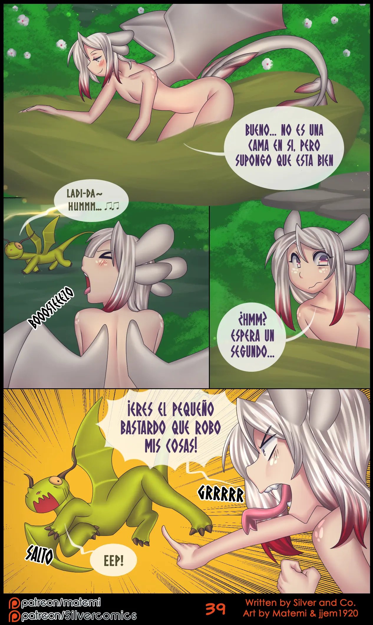 Para el dragón ha sido delicioso, porque hace años que no había probado algo como eso. Lo cual son las primeras palabras que le escucha hablar a él. Por eso le pide que la baje para poder ir a buscar lo que perdió, pero el dragón le pide que se quede quieta hasta que termine con ella. Ahora comienza a lamer su espalda con ella en cuatro, mientras también el dragón comienza a penetrarla con su enorme verga. Así la monta, aunque ella le pide que la deje sola.