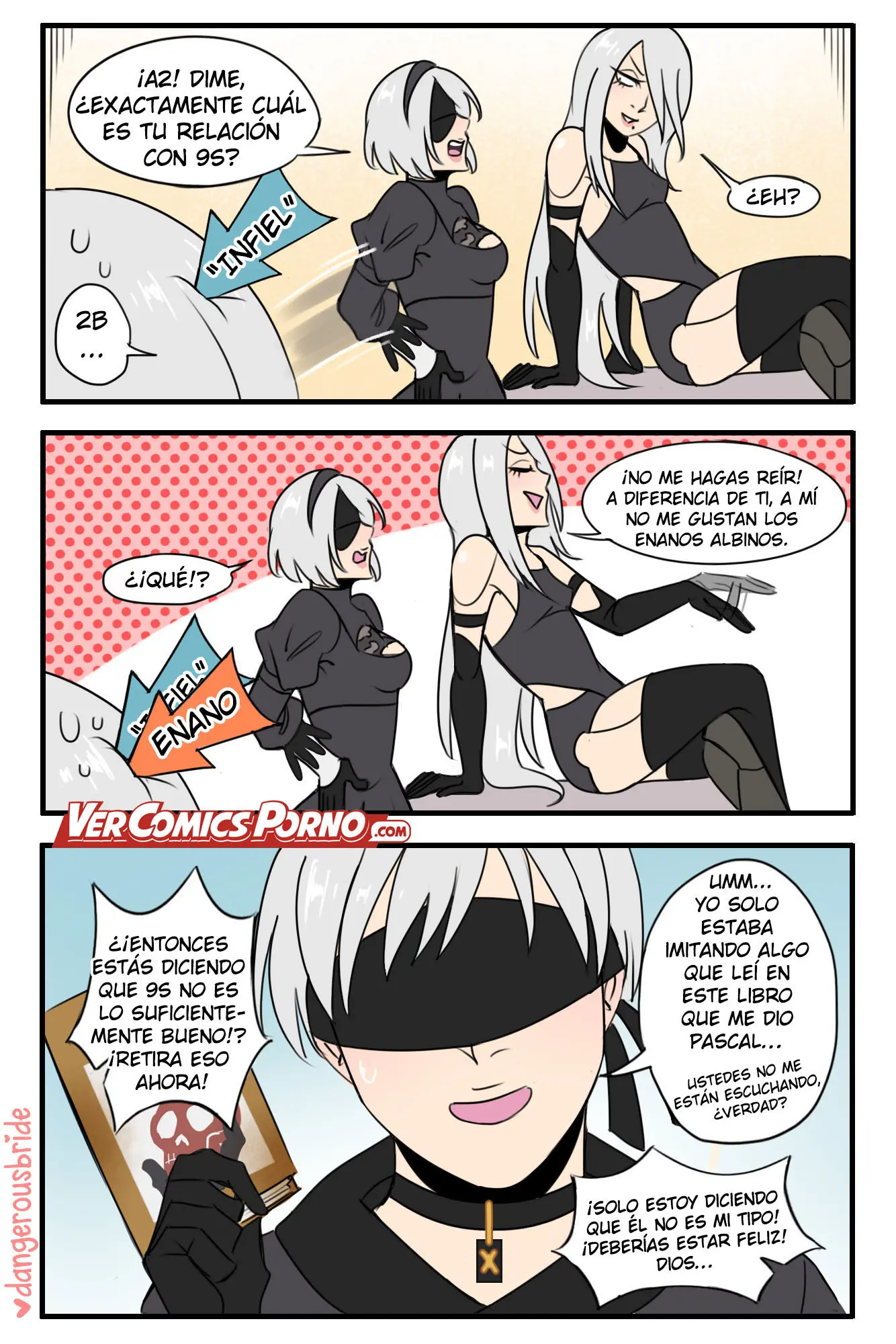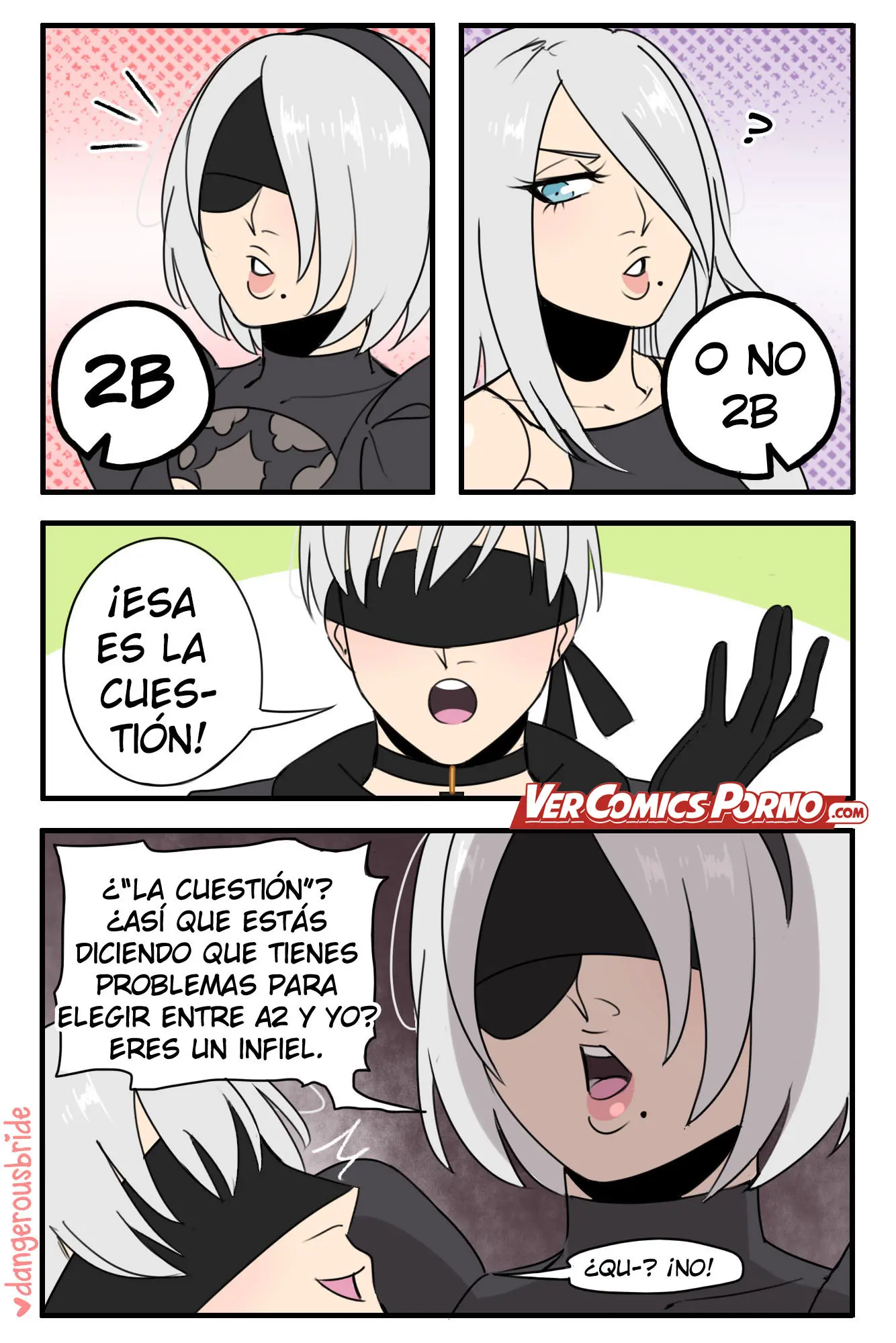 Aunque 9S finalmente tiene su oportunidad de follar con 2B, cuando A2 lo pone a elegir entre ella y la primera. En donde, en medio del coito, 2B le pregunta si preferiría estar con otras mujeres. A lo que responde que jamás, mientras se viene dentro de ella. Algo que hace muy felices a ambos.