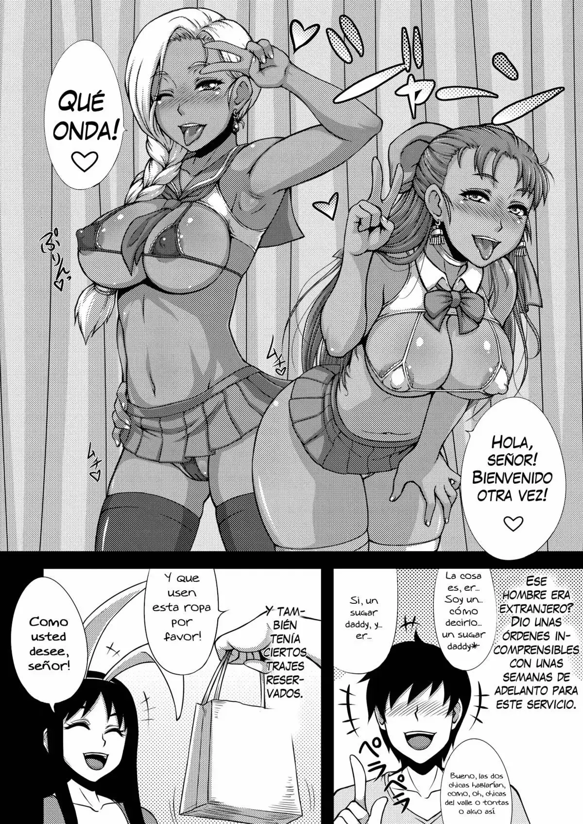 Hasta que llegamos a Nera y Bianca, que saludan muy bien a su cliente habitual. Para hoy ha dado algunas órdenes por adelantado para que ellas vayan preparadas. No solo ha querido que ellas lo esperen con lencería erótica, sino también sin rasurarse. Ese es el fetiche del cliente. Lo cual cumplen porque ha pagado mucho dinero.