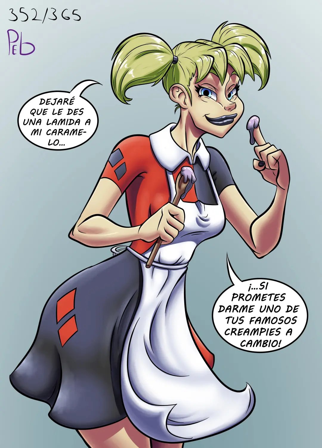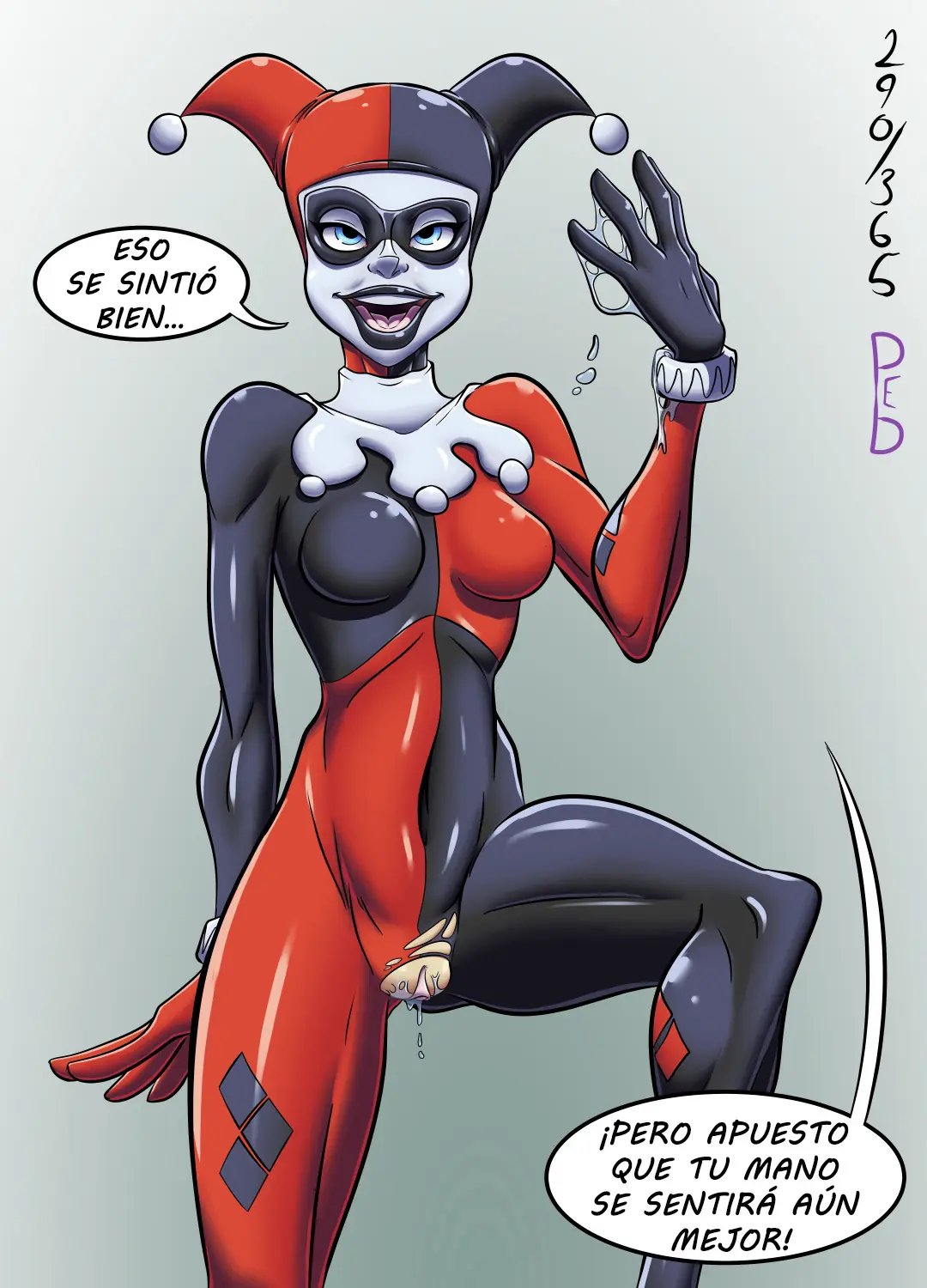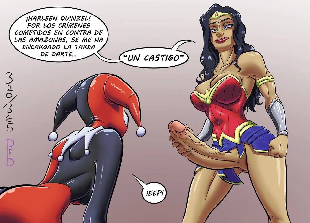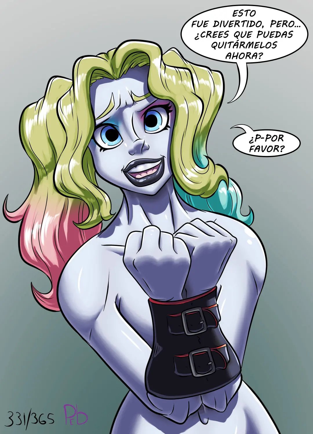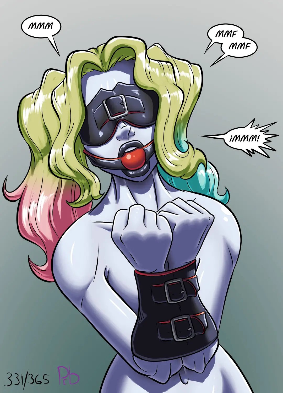 Harley Quinn es dominada completamente en esta galería de imágenes de Purpleeyebags. Ya que podemos ver cómo está atada, comiéndose vergas y hasta siendo folladas por varios dildos a la vez. Eso sí, no va a estar sola todo el tiempo o ser una mujer completa. A veces la veremos con polla o follando con otras chicas como Hiedra Venenosa o Power Girl. Las cuales tienen pollas también y follan a la pobre Harley Quinn hasta dejarla cubierta de semen.