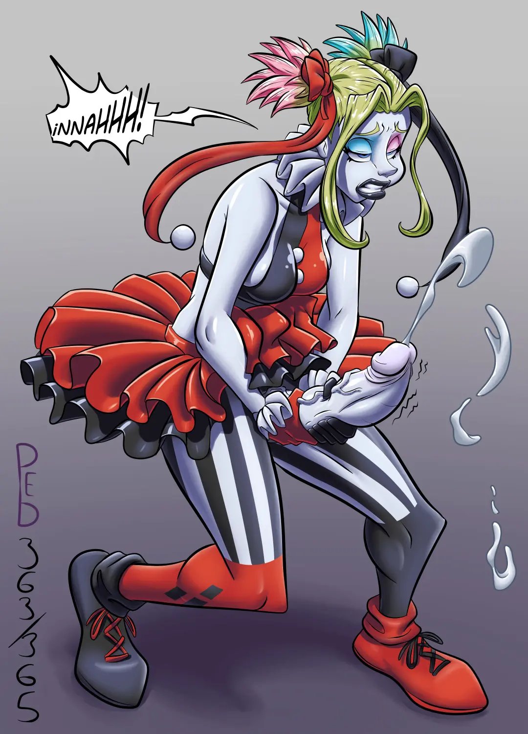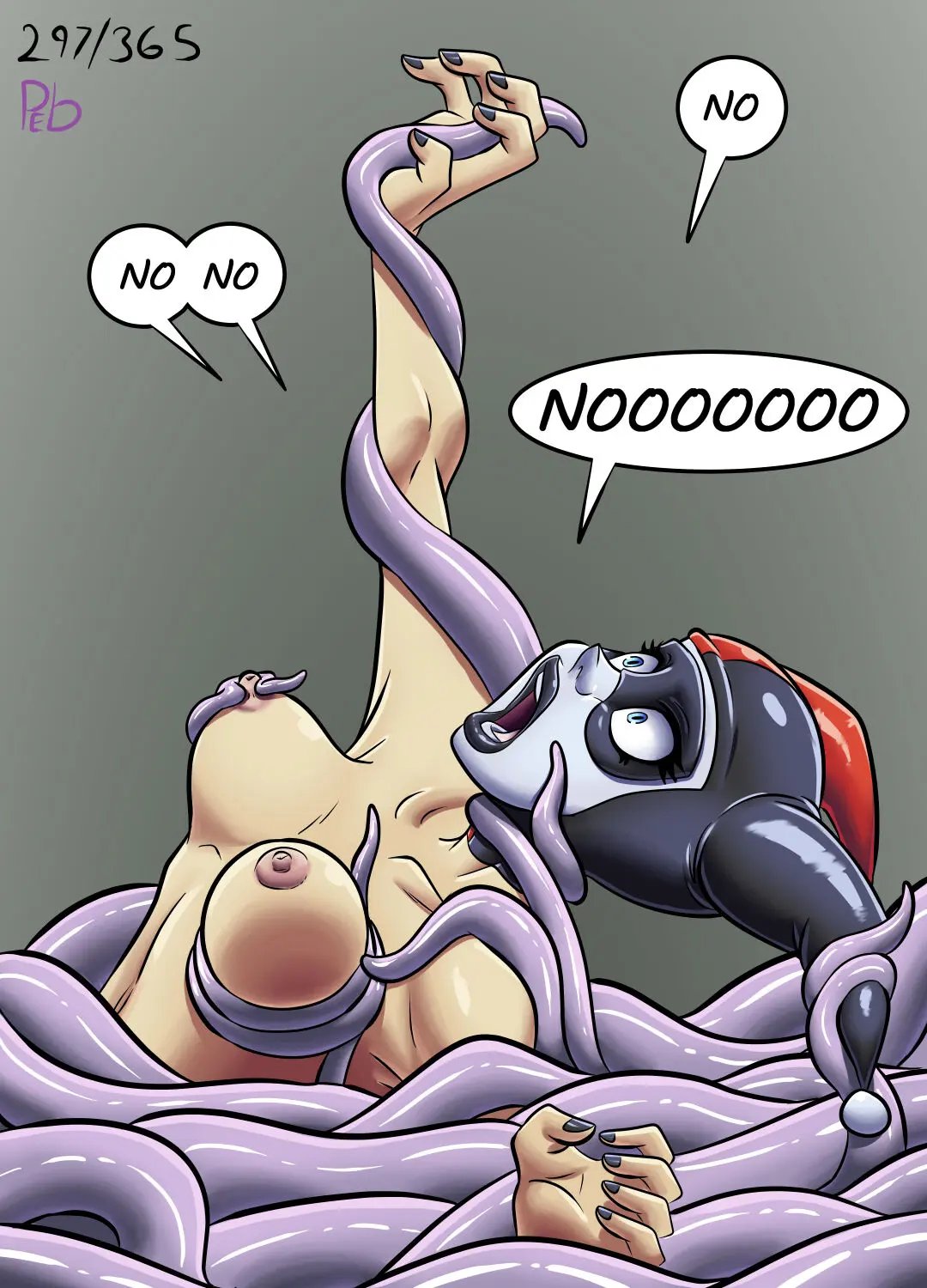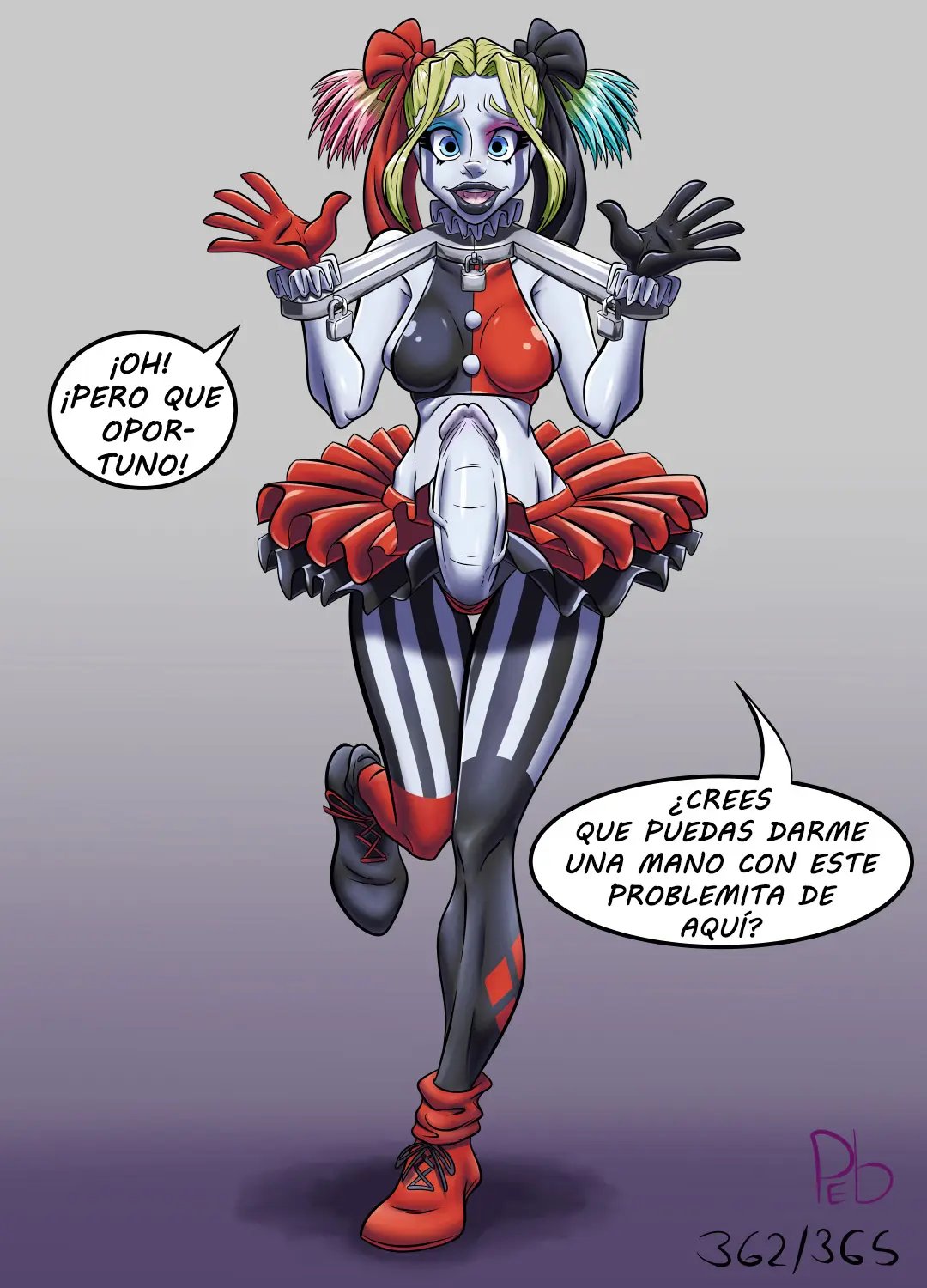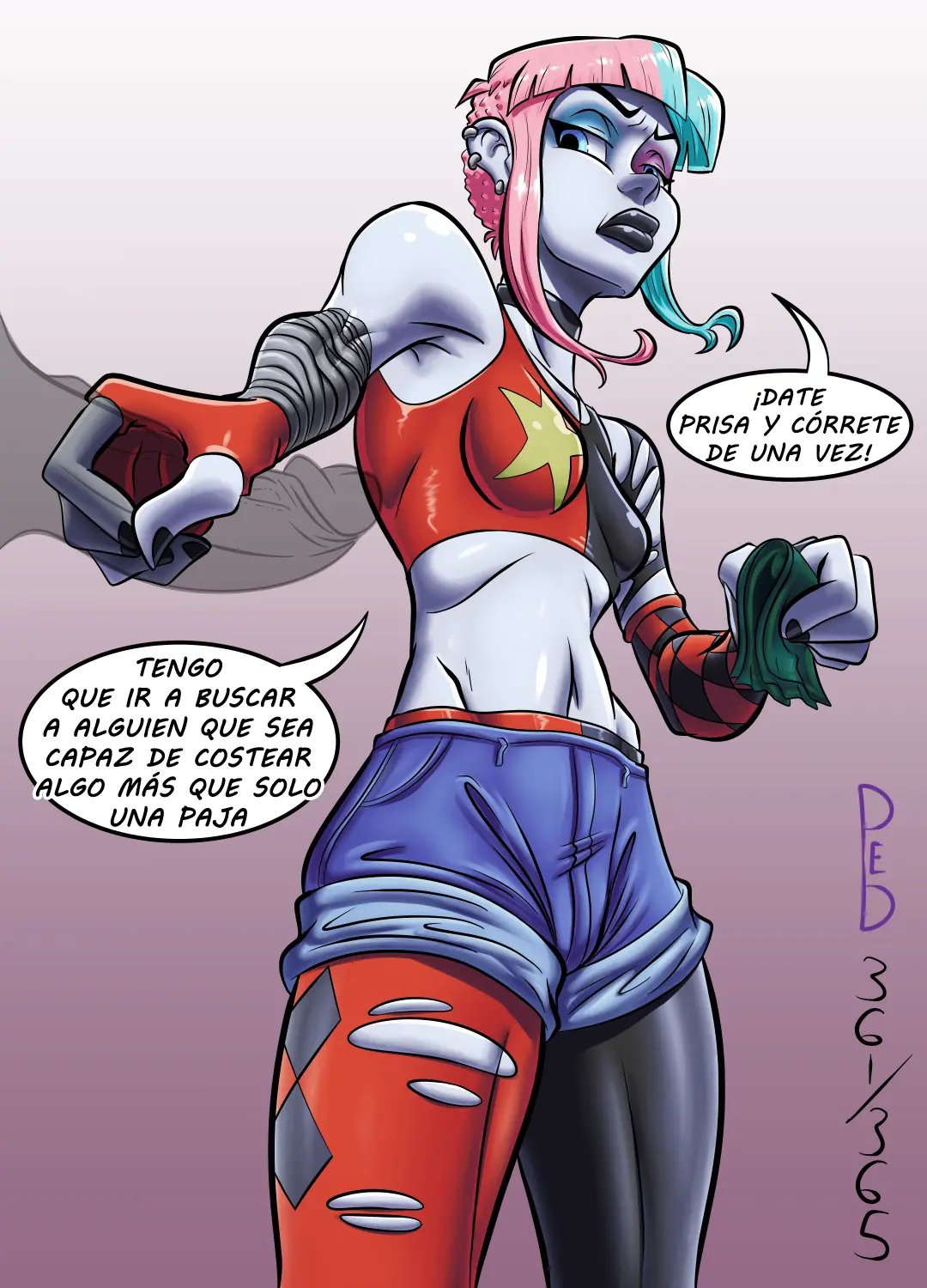 Harley Quinn es dominada completamente en esta galería de imágenes de Purpleeyebags. Ya que podemos ver cómo está atada, comiéndose vergas y hasta siendo folladas por varios dildos a la vez. Eso sí, no va a estar sola todo el tiempo o ser una mujer completa. A veces la veremos con polla o follando con otras chicas como Hiedra Venenosa o Power Girl. Las cuales tienen pollas también y follan a la pobre Harley Quinn hasta dejarla cubierta de semen.