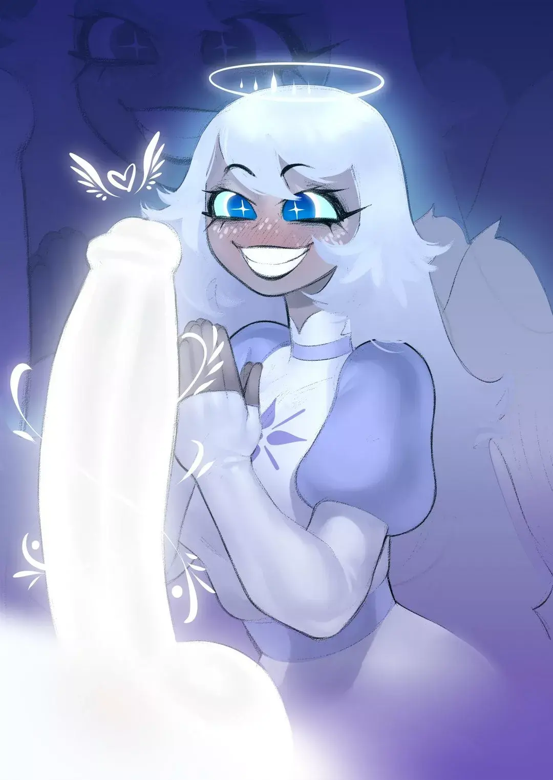 Emily le está rezando a su Señor Dios para que le dé las fuerzas para salvar a la pequeña y pura alma que tiene entre sus manos. El señor parece haber escuchado sus plegarias, ya que este pene que tenía entre sus manos se vuelve muy grande, pareciendo que ha tomado vida.