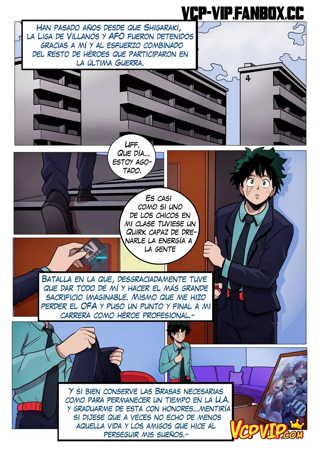 Han pasado años desde que Shigaraki, la Liga de Villandos y All For One fueran detenidos. Por eso Midoriya tiene una vida normal, donde regresa a su apartamento por la noche. También se ha conseguido una futura esposa que lo llama desde la cocina. Es Ippan Josei, una mujer alta y con el trasero y las tetas hermosas.