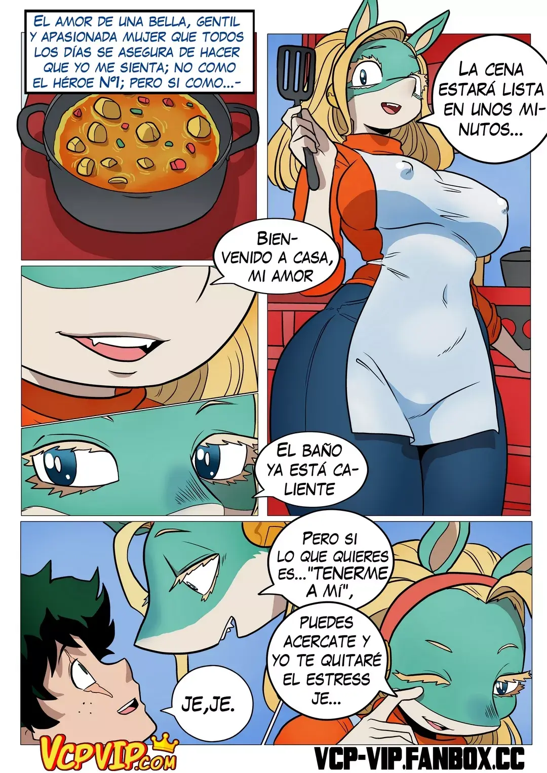 La cena estará lista en unos minutos, pero mientras tanto él puede aprovechar a bañarse. Pero si lo que quiere es tenerla a ella, debería acercarse para que le quite el estrés. Para Izuku ella es su heroína número uno, pero ella solo se considera una chica-zorra cualquiera que besa a su futuro esposo y le deja tocar sus tetas.
