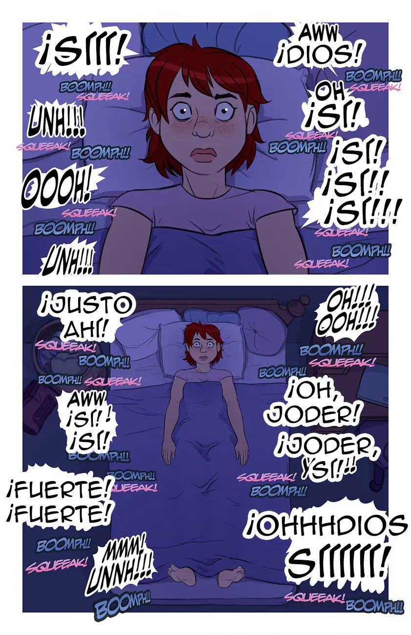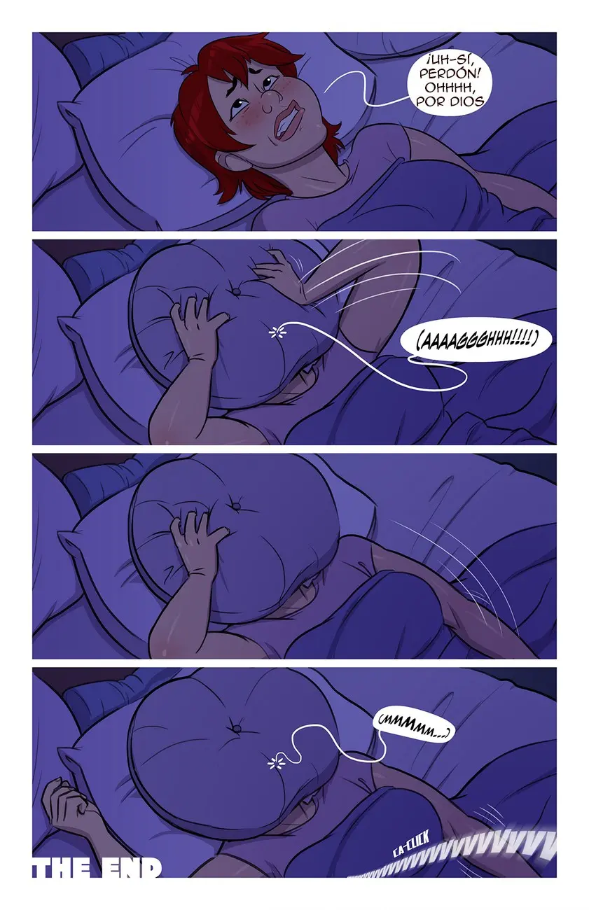 Aunque pronto es traída a la realidad cuando es despertada por su amiga que golpea la puerta. Ella ha estado gimiendo demasiado y quiere que deje de hacer ruido porque la pareja está intentando dormir. Lo cual es vergonzoso, porque lo hacía todo debido a su fantasía erótica con ellos.