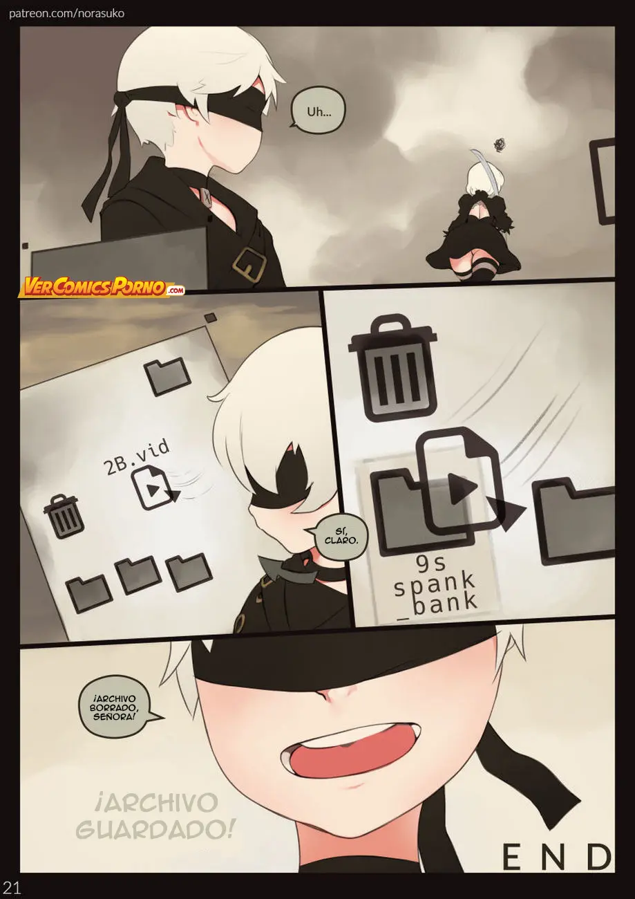 También ha vertido un líquido blanco similar al semen dentro de 2B. Una especie de líquido estimulante para androides que 2B está disfrutando como nunca. Para 9S no hay suficientes datos, así que mejor que 2B siga interactuando con él para recolectar más pruebas.
