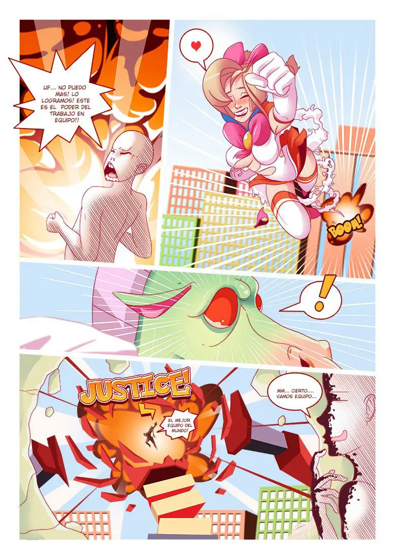 Venus Pink jamás había pensado cómo se podría sentir una función, y esta la está poniendo terriblemente cachonda al 100%. Pero el monstruo está cerca y no tienen mucho tiempo. Saitama dice que hay una fuga que no les está permitiendo completar la fusión, y ya la ha encontrado. Necesita cerrarla para estabilizar sus poderes. Por supuesto que para Saitama la fuga estaba en el trasero de Venus Pink y mete sus dedos en él. Diciendo que así sus poderes se están incrementando. Venus Pink está gritando con esto, pidiéndole que no pare. Saitama sigue con su polla dentro del coño de Venus Pink y dos de sus dedos moviéndose en el ano de esta. Venus Pink dice poder sentir la fusión de ellos. Y este gran pervertido termina en ella.