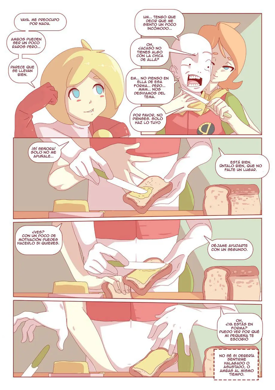 Power Girls aparece en la puerta de la cocina preguntando por qué se tardan tanto. Y en ese momento Allura lo hace terminar a Saitama usando el pan como pañuelo, luego se lleva este panecito a la boca para comérselo.