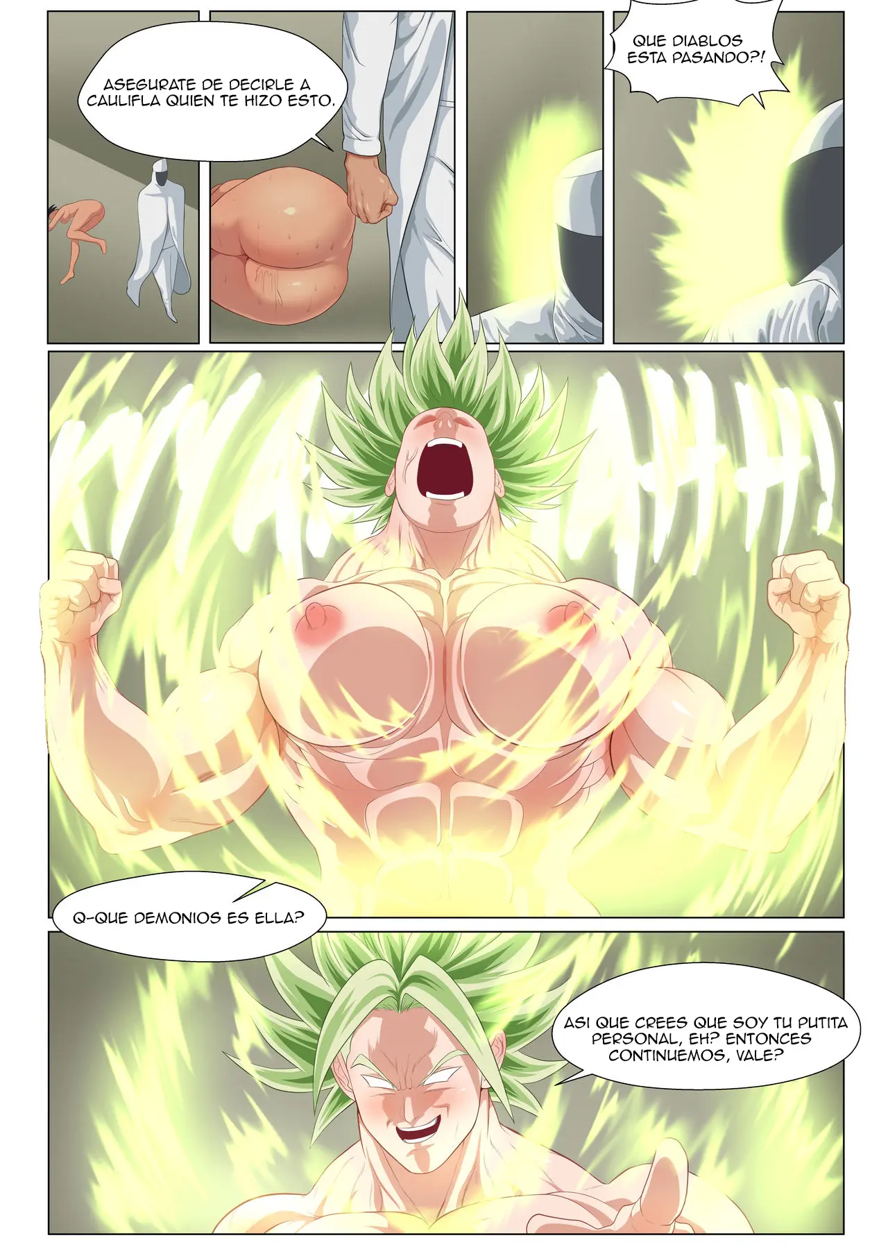 Planeaba irse, porque el mensaje ya había sido entregado. Pero Kale se transforma en la legendaria supersaiyajin porque no le ha gustado que la llame putita personal. Follando tan intenso ahora que el que tiene que aguantar es él. Quien no podrá correrse a menos que quiera ser destruido por ella. Una Kale que usa sus pies para masturbarlo y sacarle la leche, que luego lame de sus propios dedos.