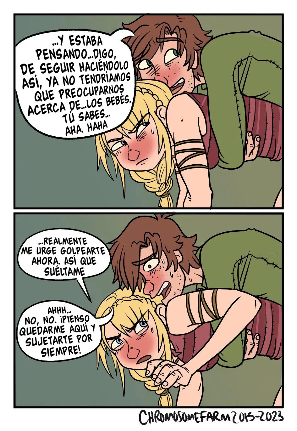 Astrid le pregunta a Hipo si no piensan que están tentando mucho a la suerte. Ellos han estado follando desde hace años, pero nunca ha podido quedar embarazada. Lo cual, ninguno de los dos quiere. Sin embargo, con todo el tiempo que llevan teniendo sexo, solo es cuestión de tiempo para que ella lo esté. Han sido cuidadosos, pero lo que más le alegra a Astrid es que él fracase en todo, ya que en embarazarla también lo hace.