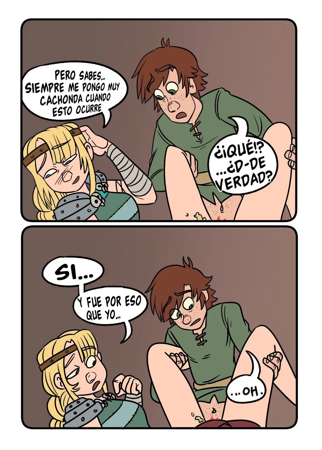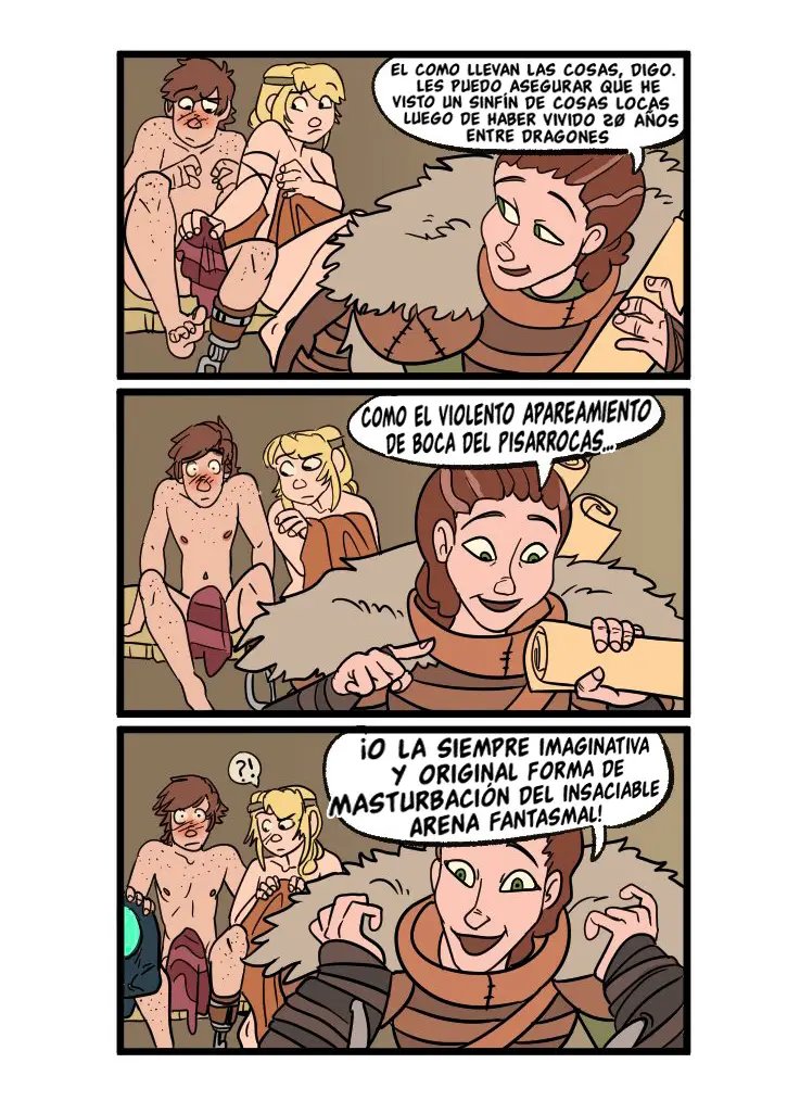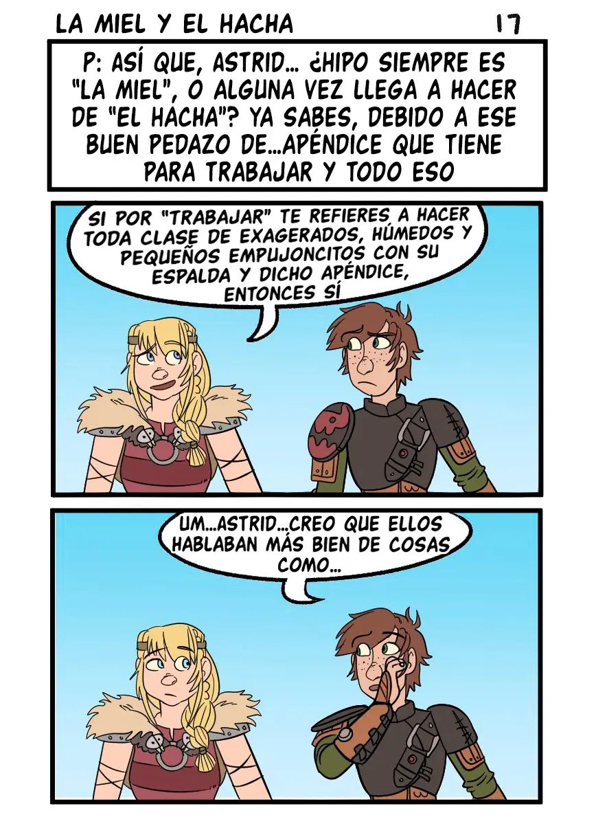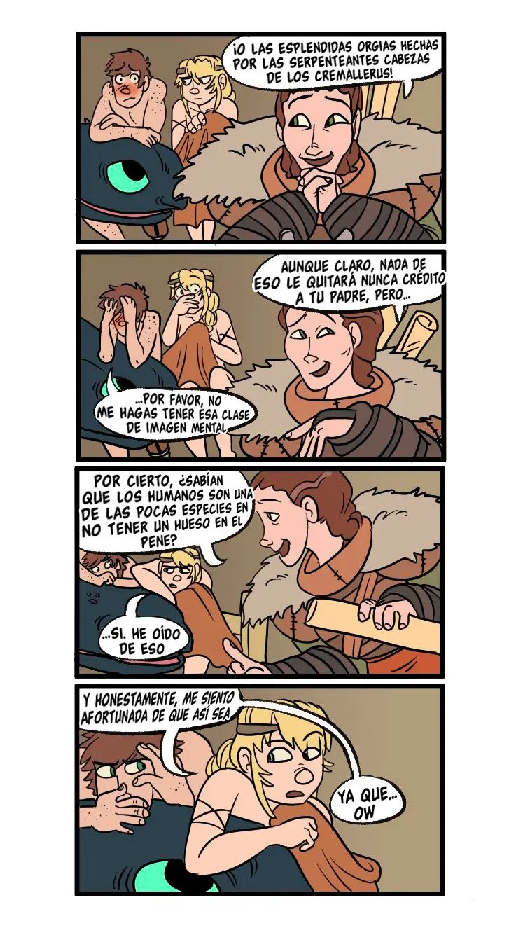 Astrid quiere contar algo avergonzó de Hipo cuando tuvieron sexo, y tiene que ver con que un dragón estaba con ellos cuando lo hacían. Hipo uso su saliva como lubricante. Lo cual es mejor que la vez que lo dejo solo e incendio la casa. Pero sus aventuras sexuales son muy variadas, con una vez que lo hicieron en las alturas, y la vez que el padre de Hipo casi los pillas mientras él le comía el chocho a la chica.
