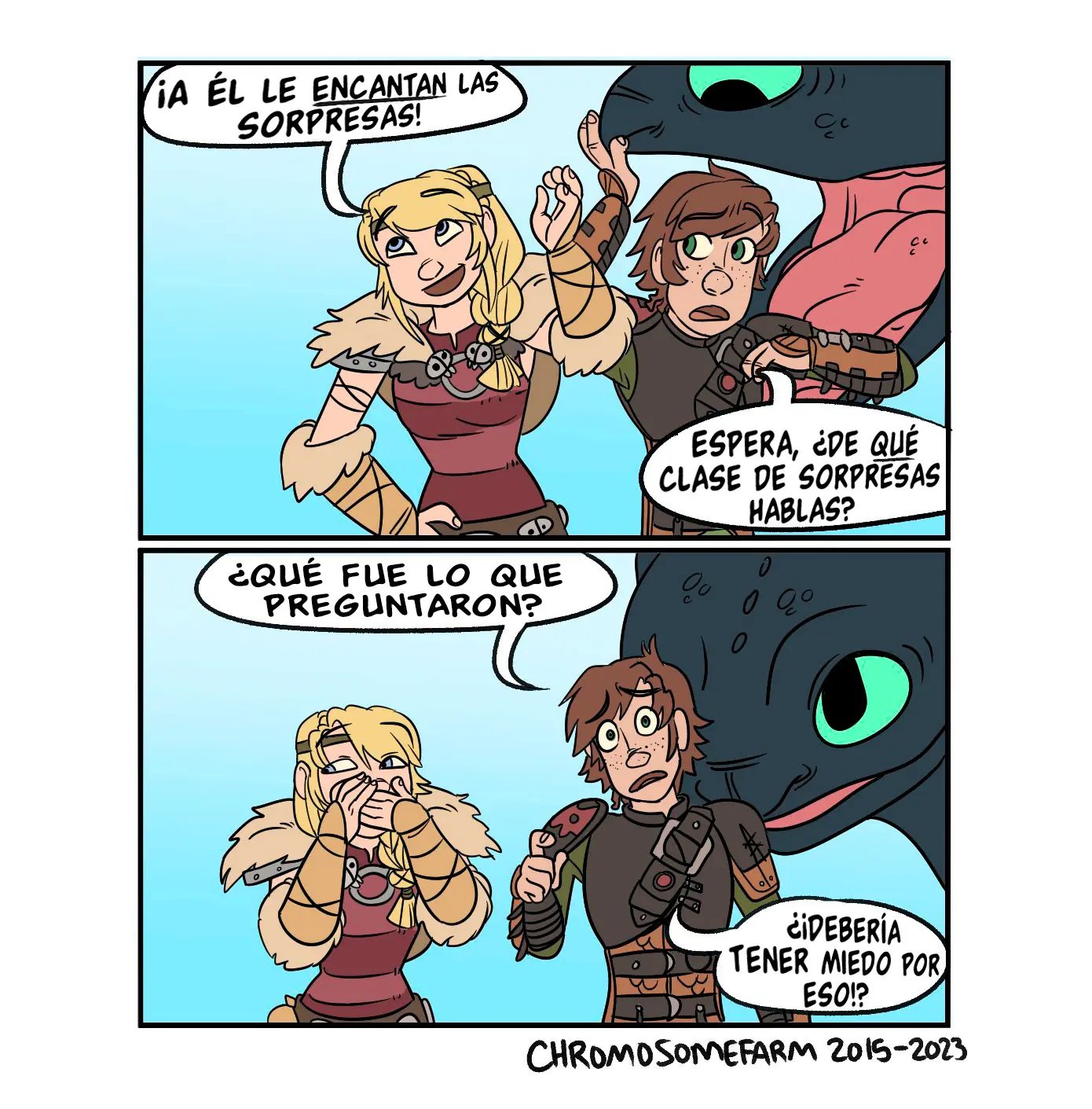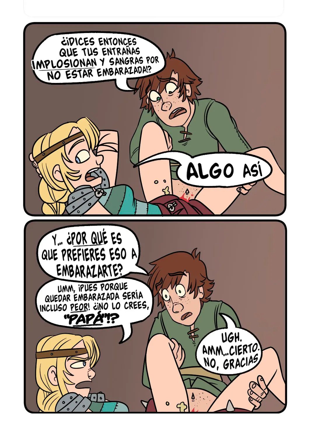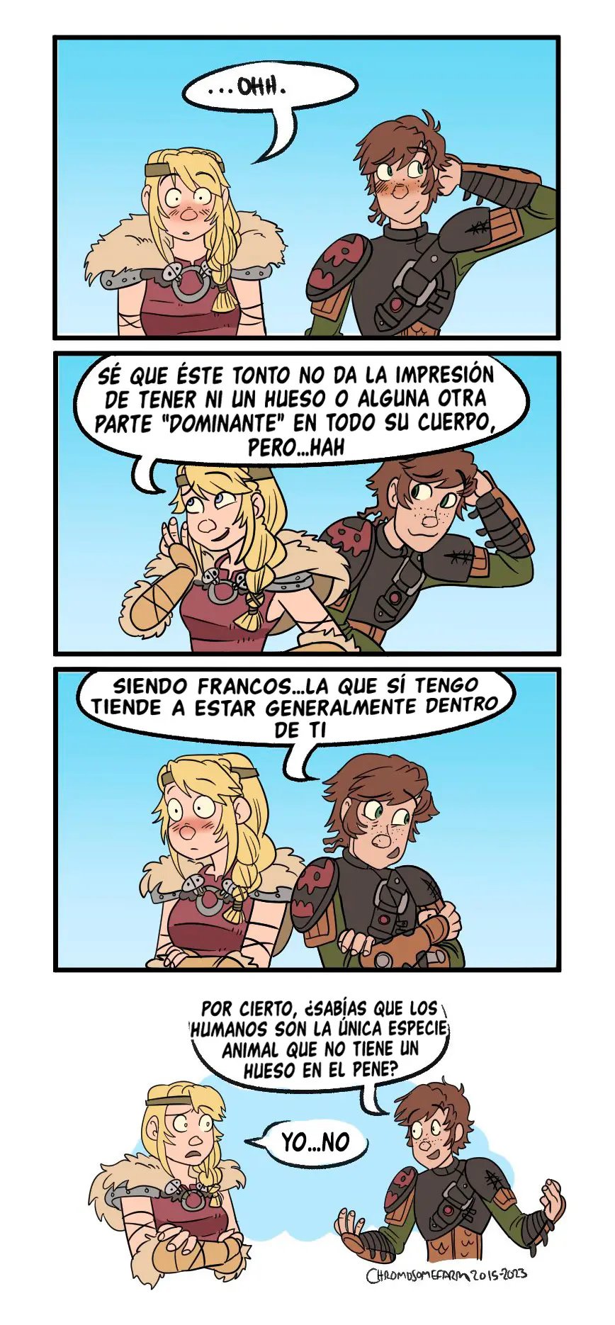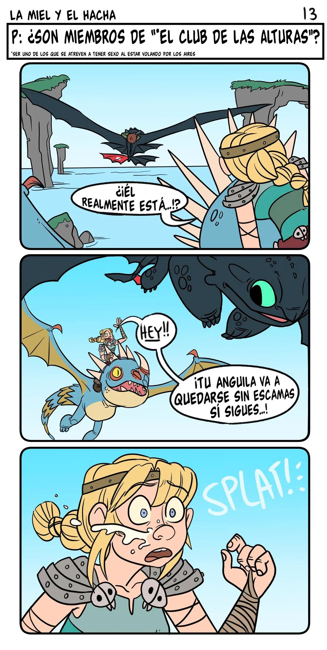 Astrid quiere contar algo avergonzó de Hipo cuando tuvieron sexo, y tiene que ver con que un dragón estaba con ellos cuando lo hacían. Hipo uso su saliva como lubricante. Lo cual es mejor que la vez que lo dejo solo e incendio la casa. Pero sus aventuras sexuales son muy variadas, con una vez que lo hicieron en las alturas, y la vez que el padre de Hipo casi los pillas mientras él le comía el chocho a la chica.