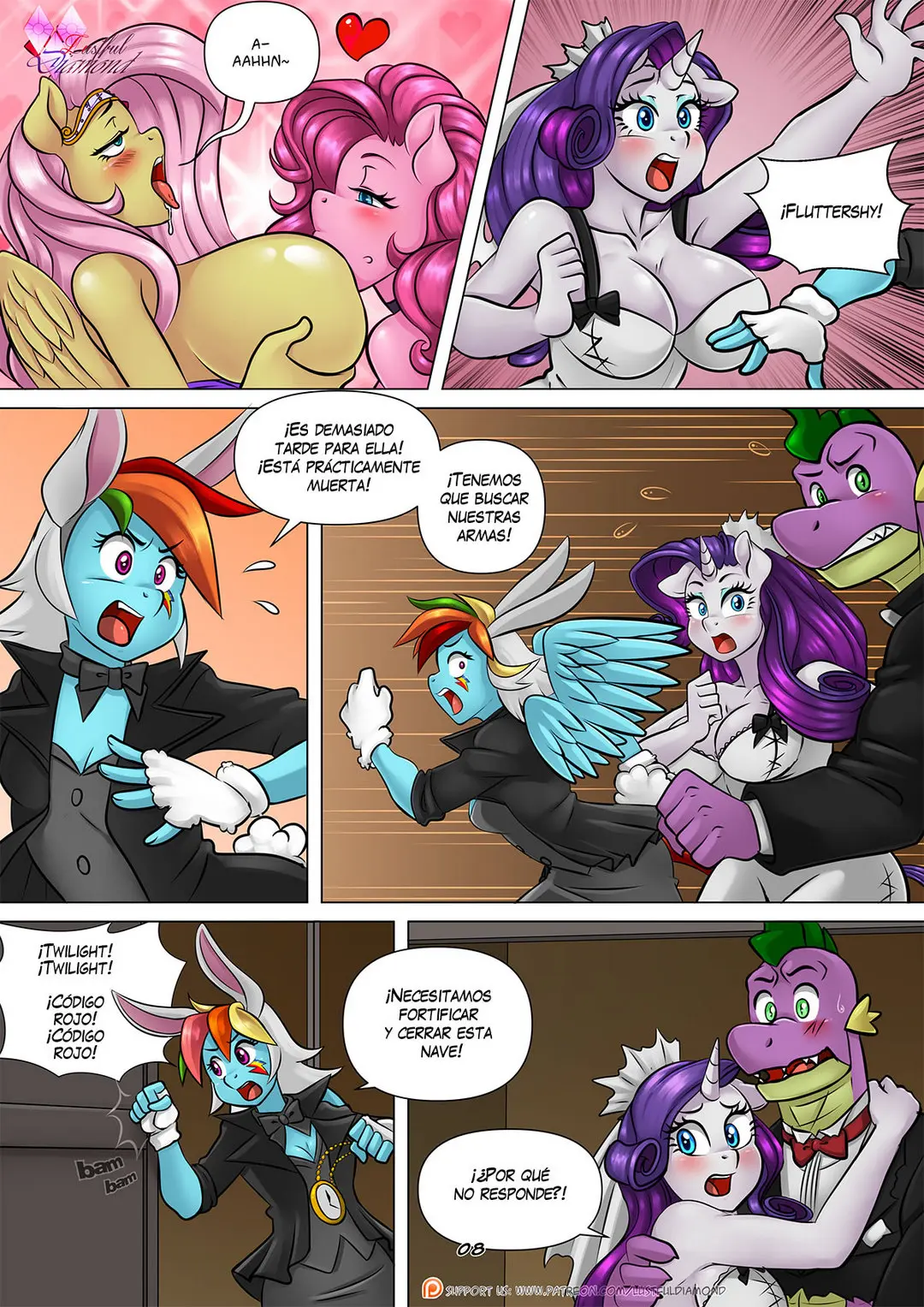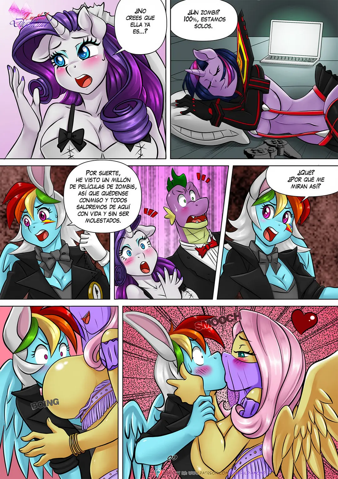 Todos terminan teniendo una orgía, para despertar muchas horas después, completamente liquidados. Dándose cuenta de que no fueron zombies, sino que Pinkie vertió demasiado de su especia en la cena, al respirarla se puso increíblemente cachonda y cuando echo su aliento esparció el resto de la especia a todos allí.