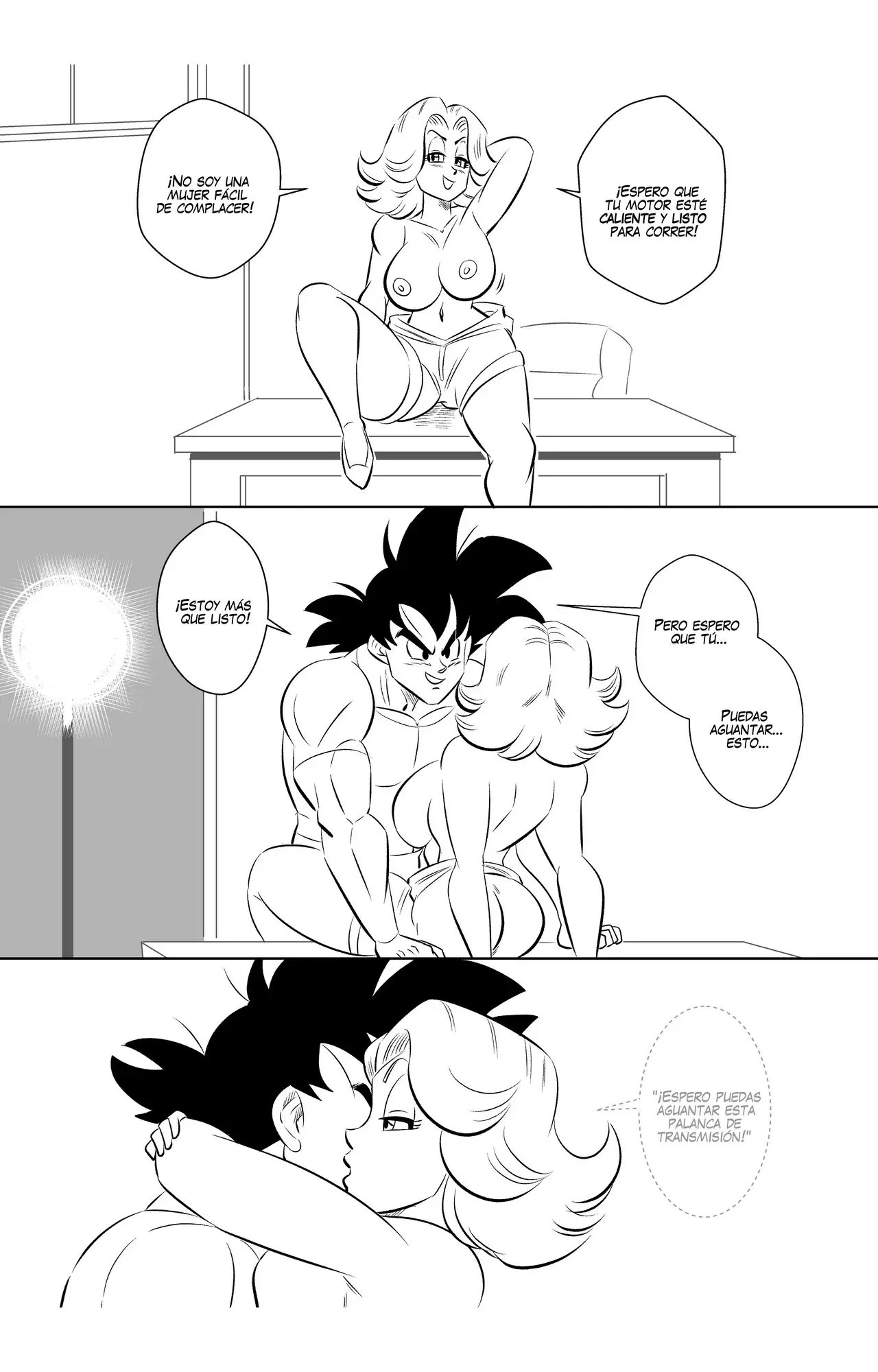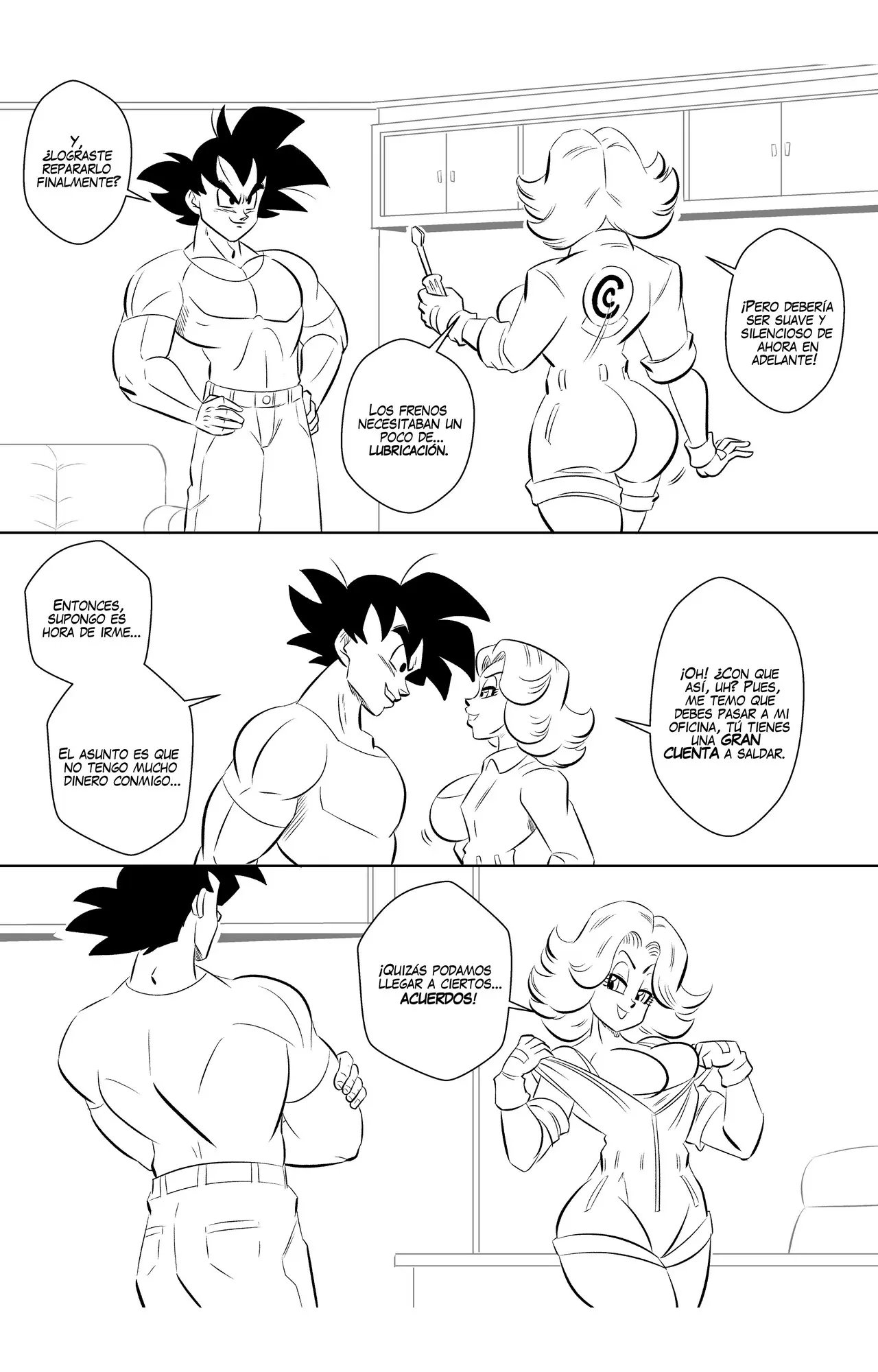En la escena de Goku y Bulma, ella es una mecánica muy sexy. Donde él no tiene mucho dinero para reparar su coche, pero ella tiene un plan de pago que puede entregárselo cuando se quite toda la ropa. Solo que no es una mujer fácil de complacer, por lo que espera que su motor esté muy caliente. Goku está más preocupado de si ella puede aguantar su palanca de transmisión.