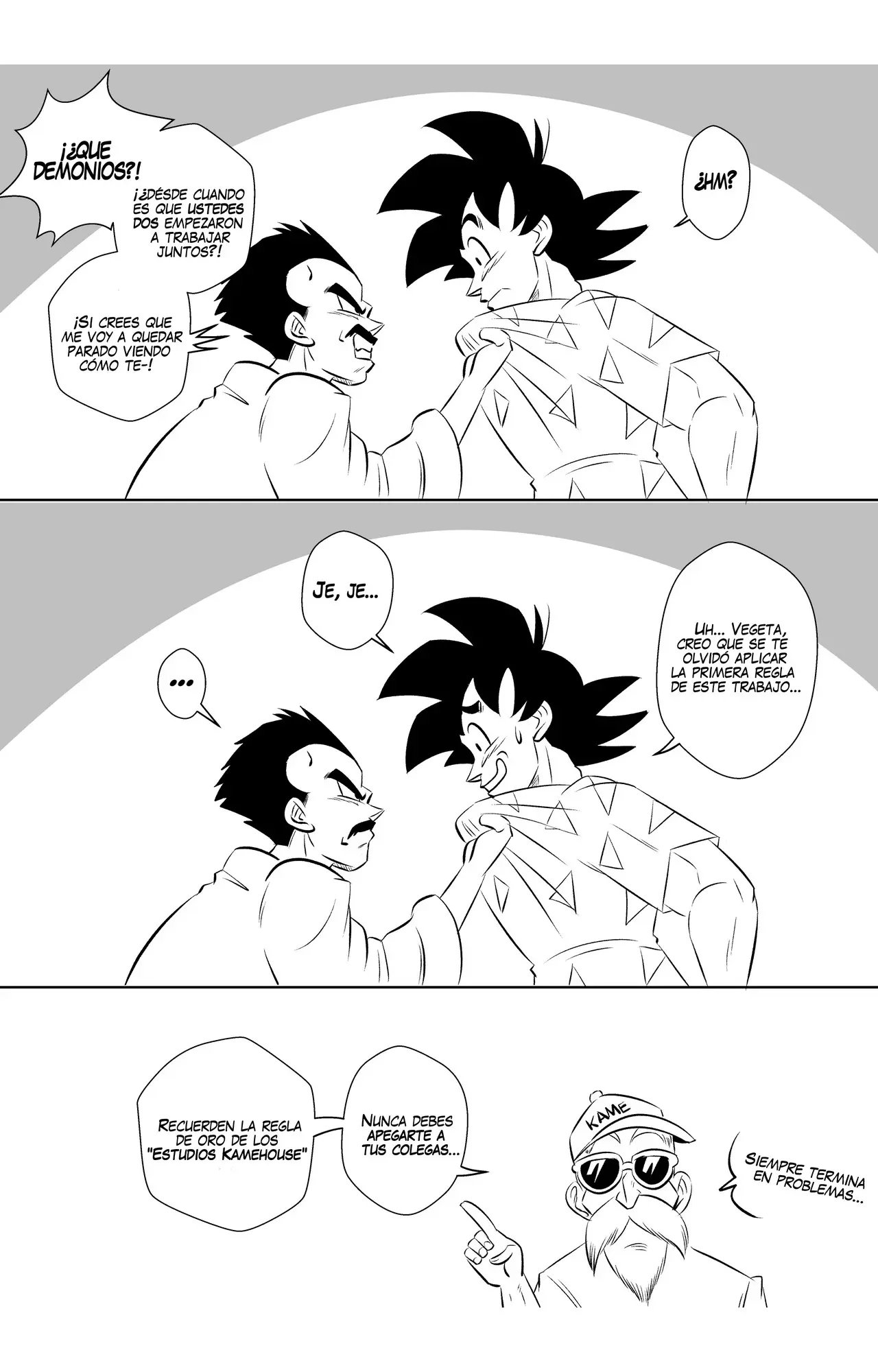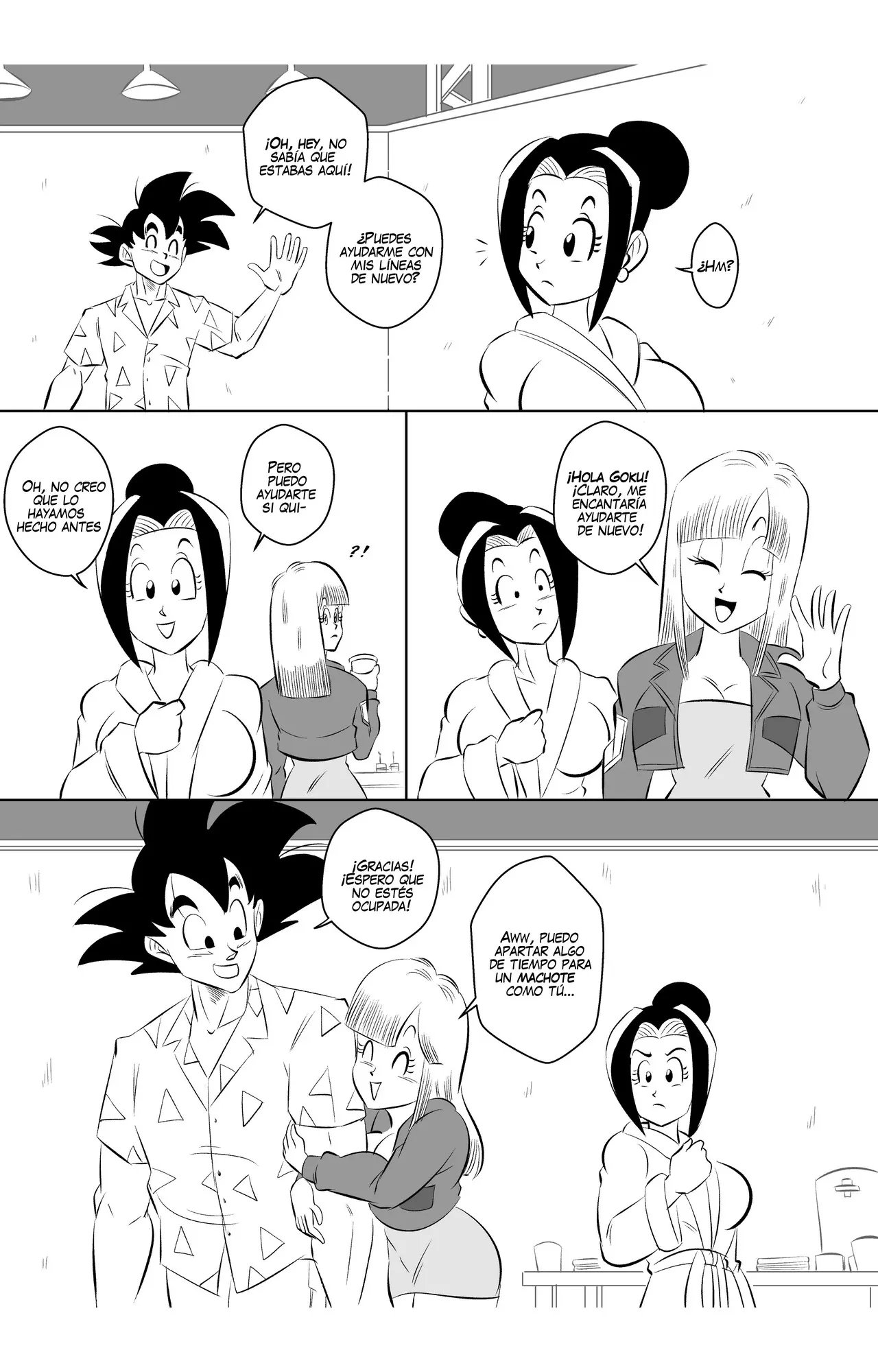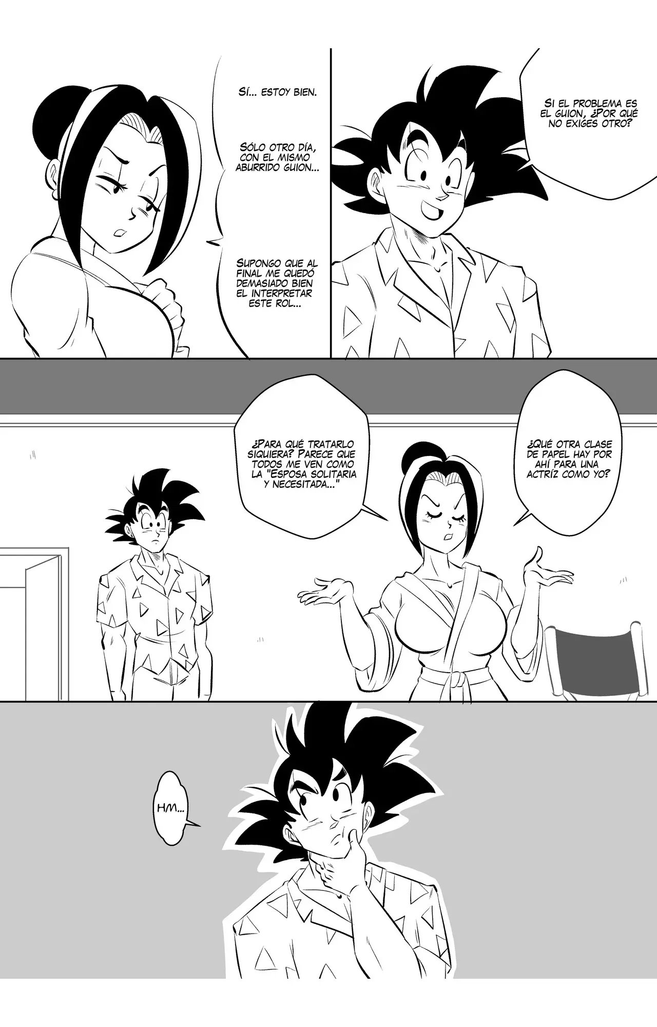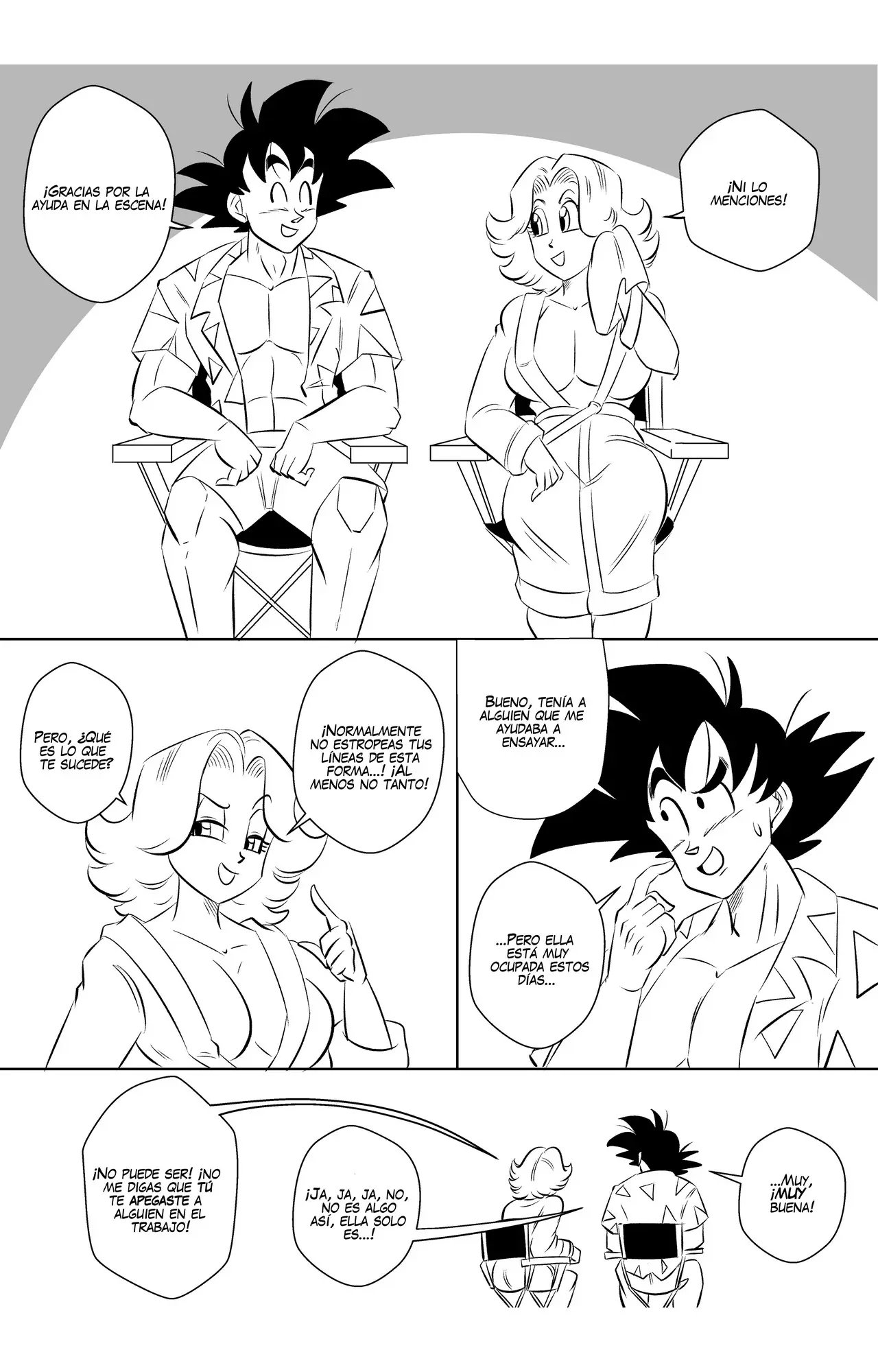 Goku y Vegeta hablaban sobre lo poco profesional que es Goku, hasta que llega Bulma y se alegra de que pueda volver a grabar otra escena con su mejor amigo. A quien le da un beso en la mejilla y le dice que espera que no haya perdido su toque. Eso enoja a Vegeta, que le dice que no se quedara esperando mientras ellos dos hacen una escena de sexo.