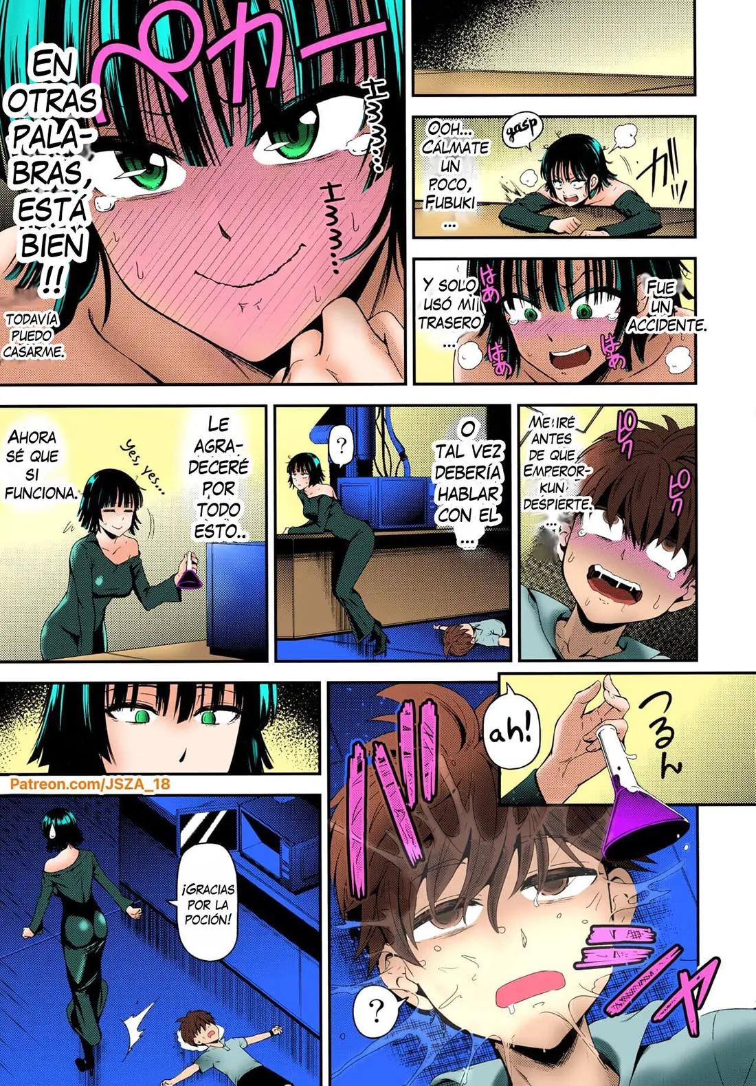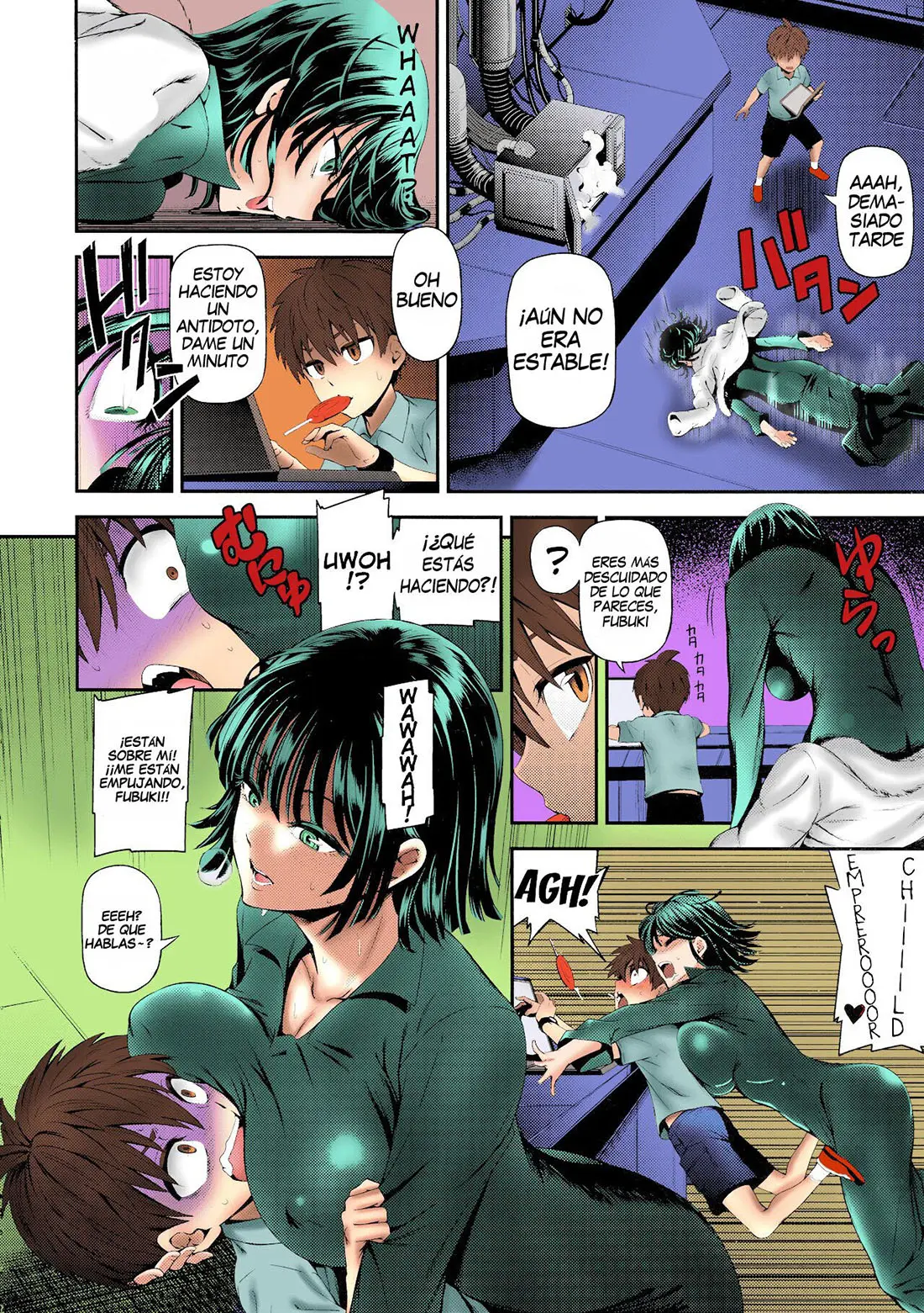 Como Fubuki lo hace y huele los humos que salen de ella, se desmaya. Por eso Kid Emperor comienza a trabajar en un antídoto antes de que ella se excite demasiado. Lo que es demasiado tarde, porque ella salta por detrás y pone sus tetas en la cara del chico. Así no puede trabajar, pero a Fubuki no le importa.