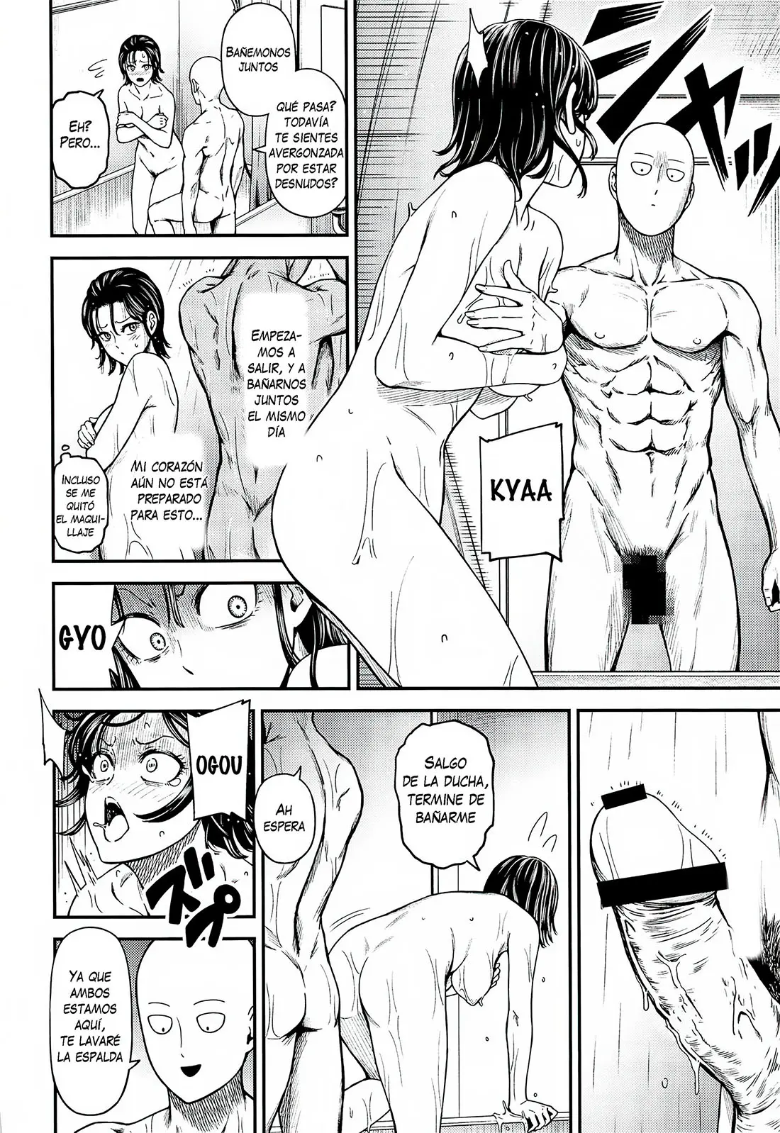 Por desgracia, Saitama también quiere ayudarla a limpiar su sudor, entrando a la ducha con ella. Le propone tomar una juntos todos los días, pero ella aún siente vergüenza y se prepara para salir. Momento que Saitama aprovecha para meter su verga ahora que tiene a su nueva novia de espaldas. Claro que, al mismo tiempo, la limpiará bien, comenzando por su parte delantera y sus enormes pechos. Lavando cuidadosamente los pezones de su mujer.