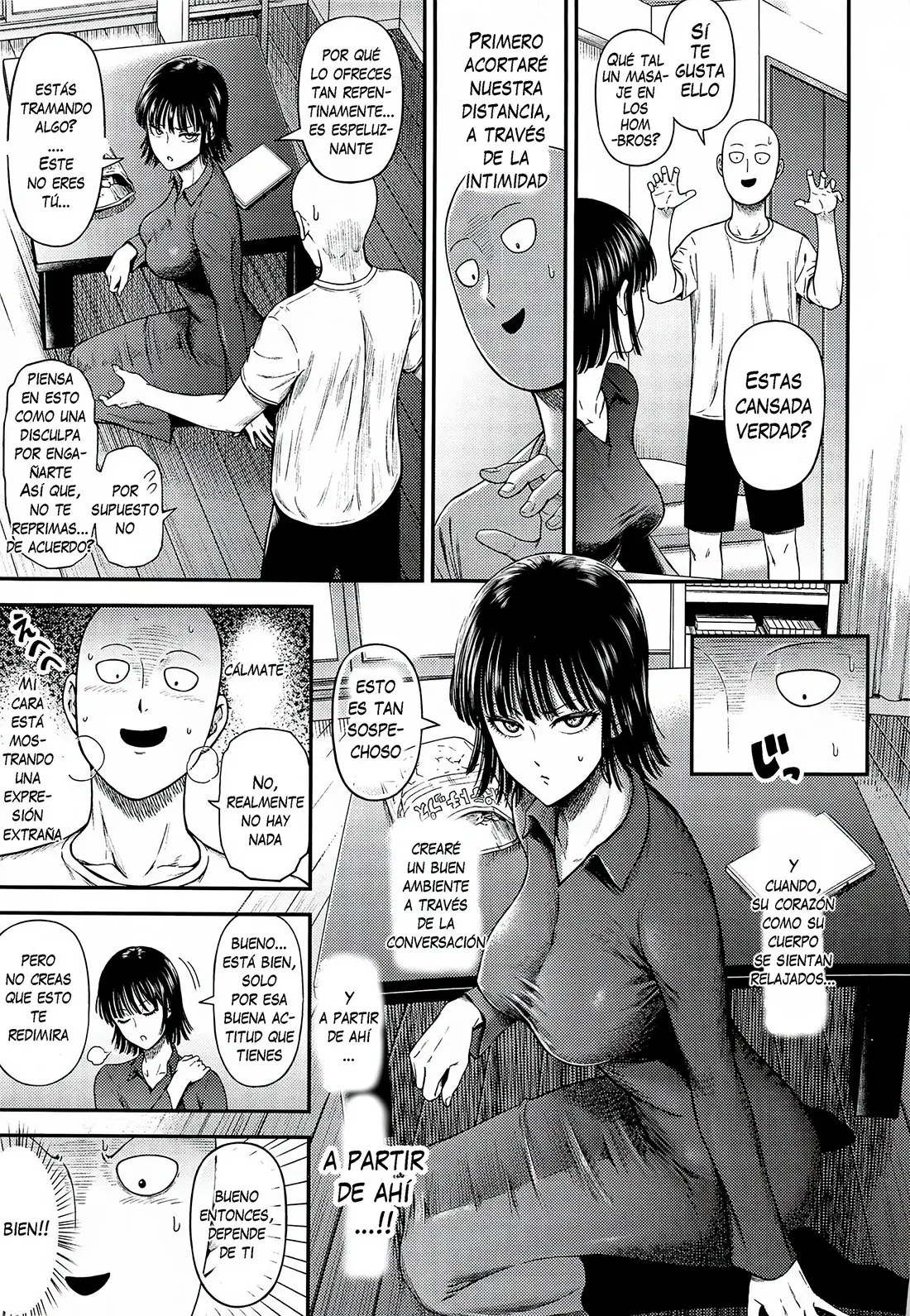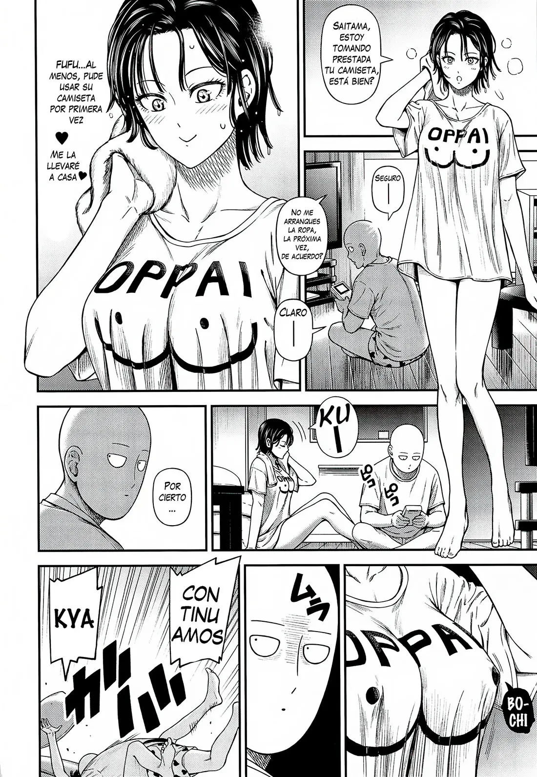 Su gran idea es ofrecerle un masaje para acortar la distancia entre ellos. Algo que ella finalmente acepta, aunque le parezca raro que Saitama actúe diferente. Aunque la broma es para él, porque con el cuerpo tan erótico de ella no puede pensar con claridad. Está deseando los pechos de ellas, y se pregunta cómo hizo anteriormente para conseguir una chica así. Si no hace un movimiento pronto, su pene va a explotar.
