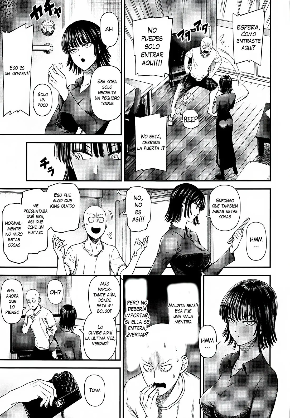Ella logró entrar al usar sus poderes, lo cual para Saitama es considerado un crimen. Intenta explicarle a la chica que él no ve esas cosas, es solo algo que King olvidó allí. Lo cual es una muy mala mentira y hasta él se da cuenta de su error. Igual no es lo que le preocupa a Fubuki, sino recuperar su bolso que se lo dejó la última vez que estuvo allí.