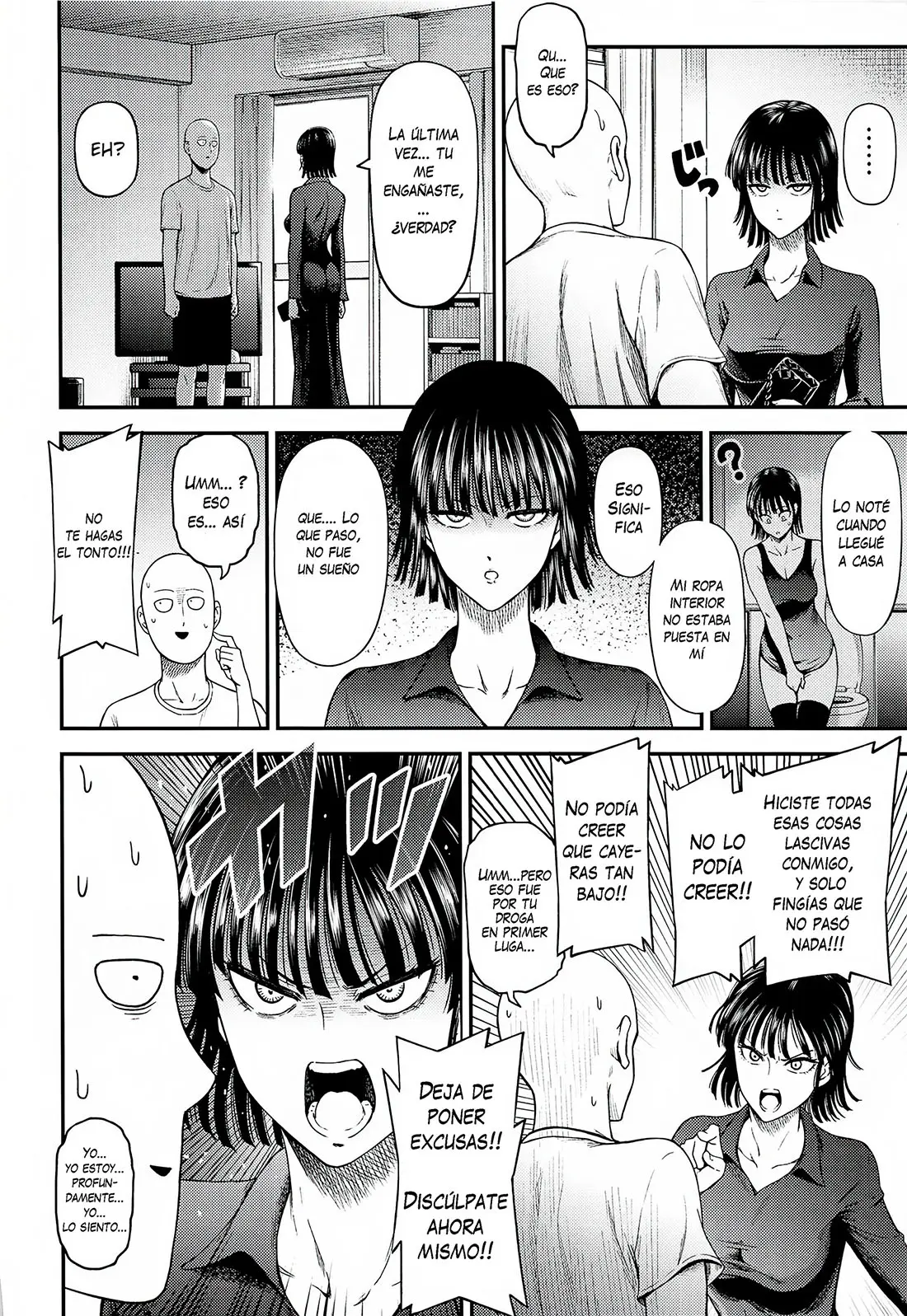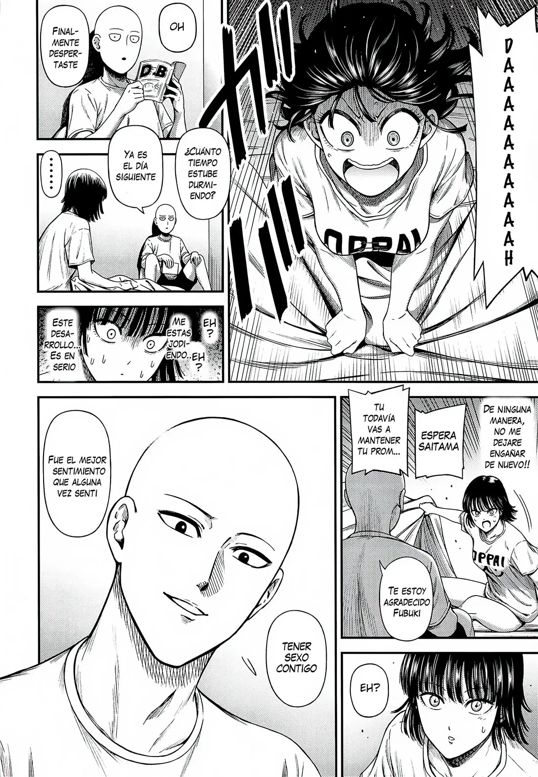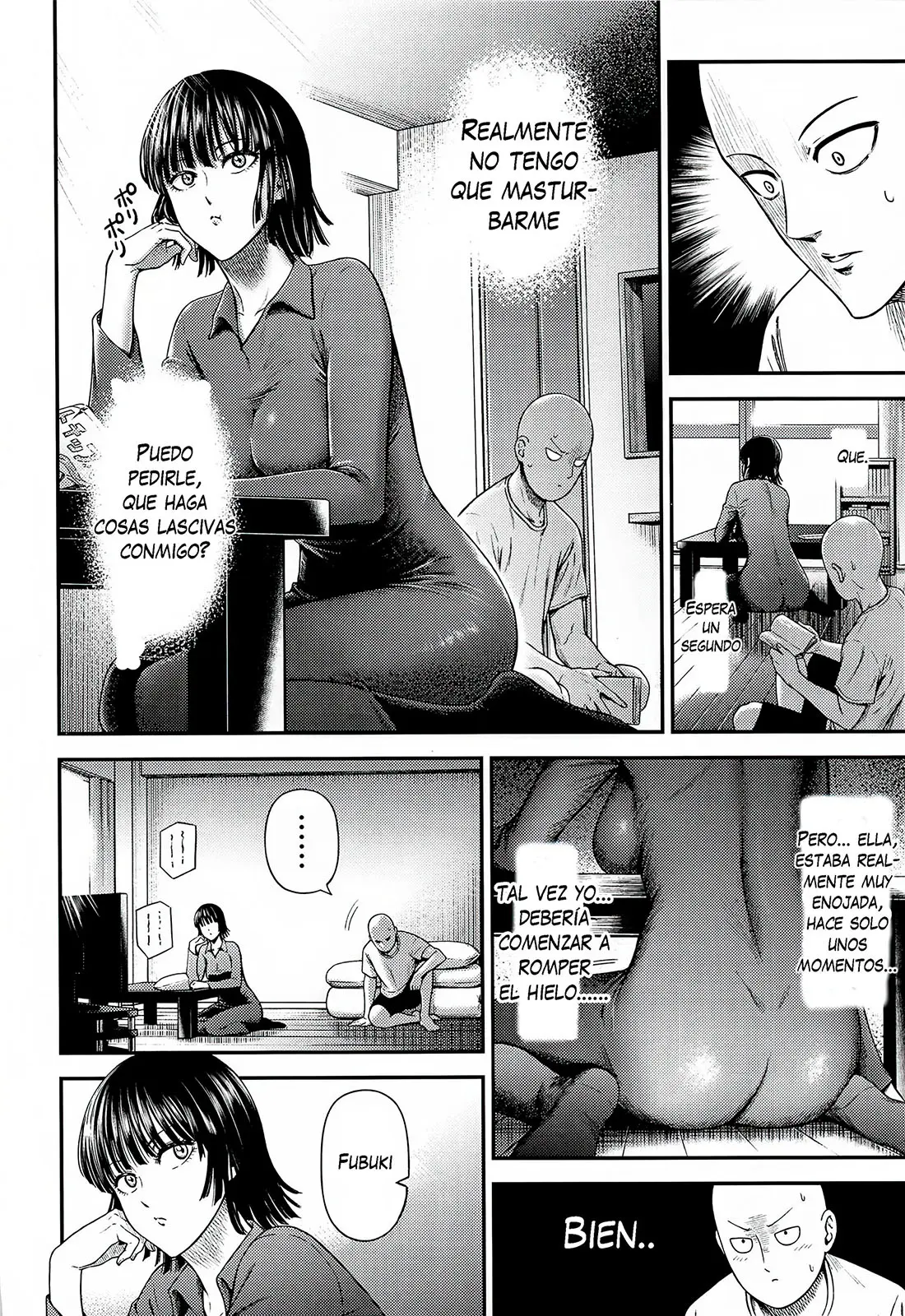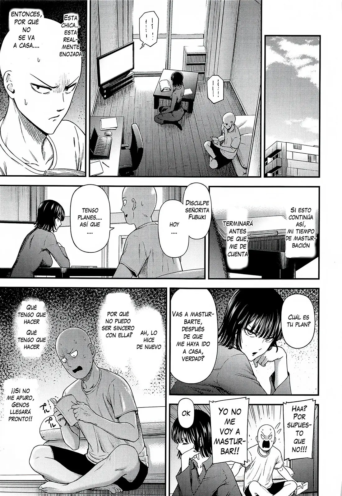 Ha llegado el momento para Saitama. Después de dos largas semanas, tiene que darse mantenimiento. Eso significa poner una película XXX en el televisor y masturbarse. Solo que ese tiempo a solas es interrumpido por Fubuki, que está parada allí como si nada.