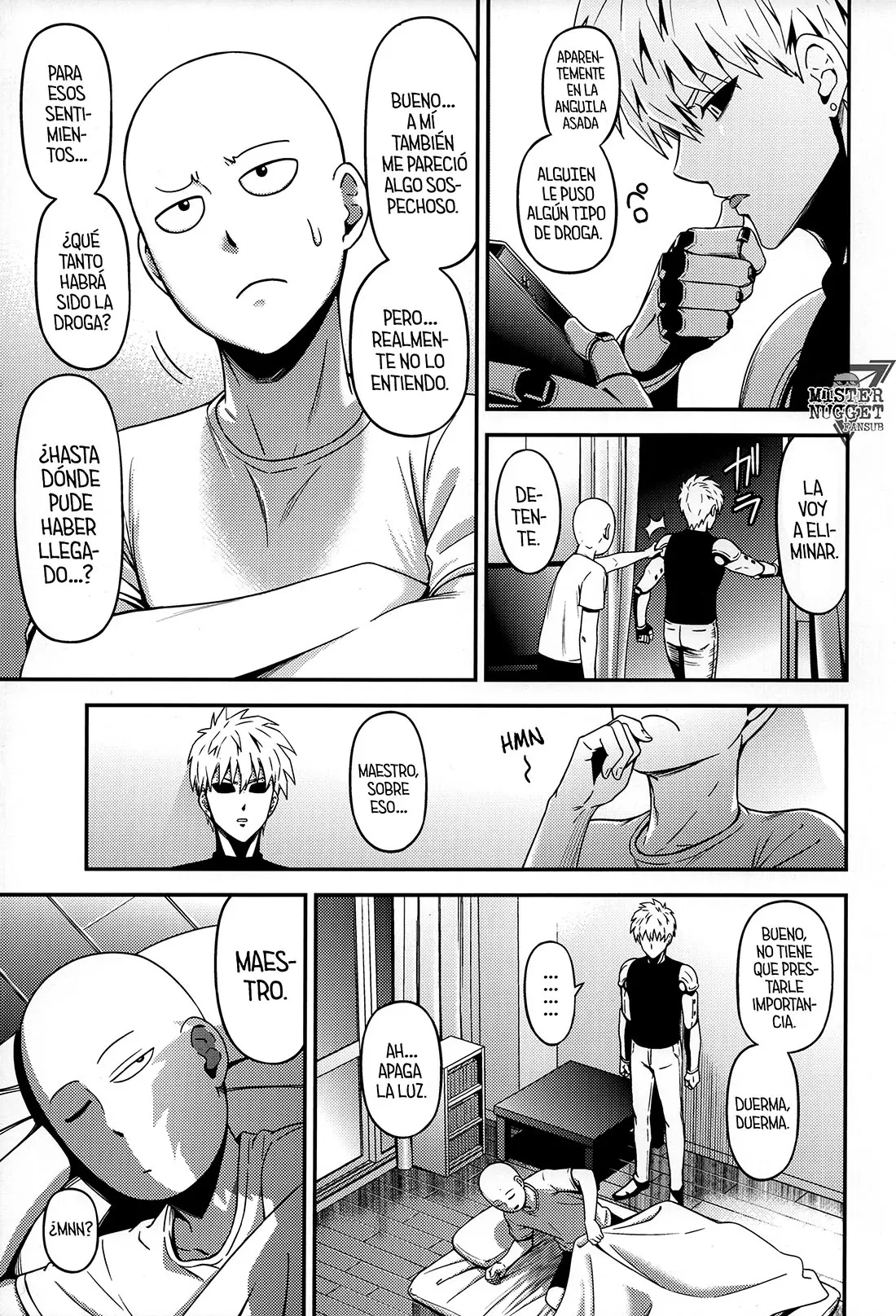 Por desgracia, Fubuki se había quedado dormido leyendo manga y, cuando despierta, sale corriendo por la vergüenza que le ha causado. Sin embargo, Genos ha estado viendo toda la interacción y le dice que estuvo mal de su parte arreglar esto diciéndole lo del sueño. Genos también se da cuenta de que hay una droga en la anguila asada. Algo que Saitama piensa que no explica los sentimientos que tiene por ella. Lo que reflexionará el día de mañana porque ahora se va a dormir. Aunque, luego de eliminar la comida, Genos parece haberla probado y termina intentando acostarse en la cama de su sensei luego de despertar sentimientos por él.