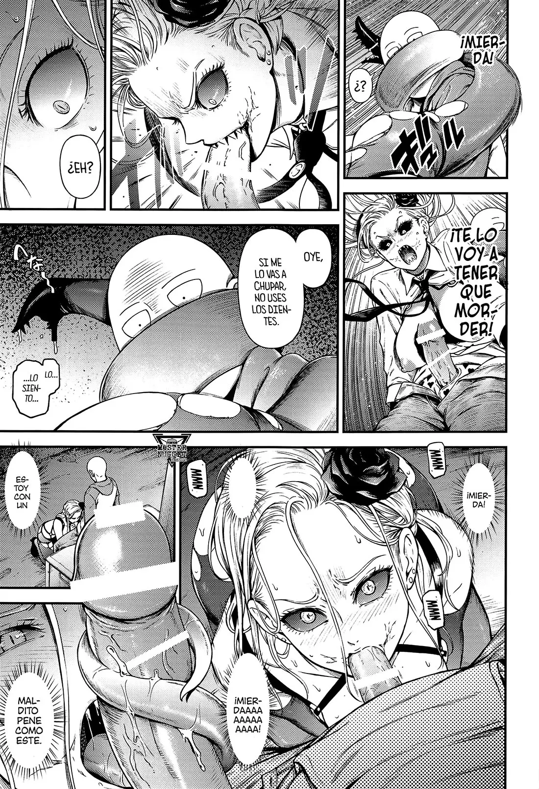 Ya únicamente le queda morder, lo cual no está nada bien para Saitama, que le dice que si se la va a chupar, no debe usar sus dientes. Por lo que termina siendo una mujer sumisa mientras se la come de rodillas, teniendo que usar su lengua especial para enrollarse entre ella.