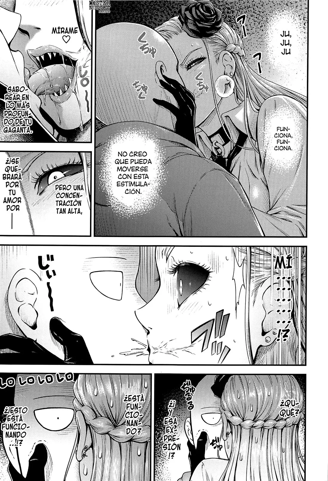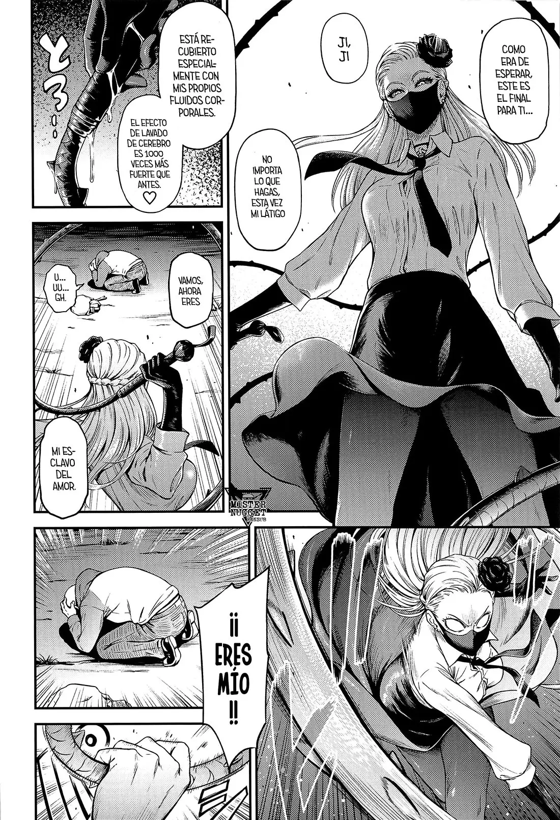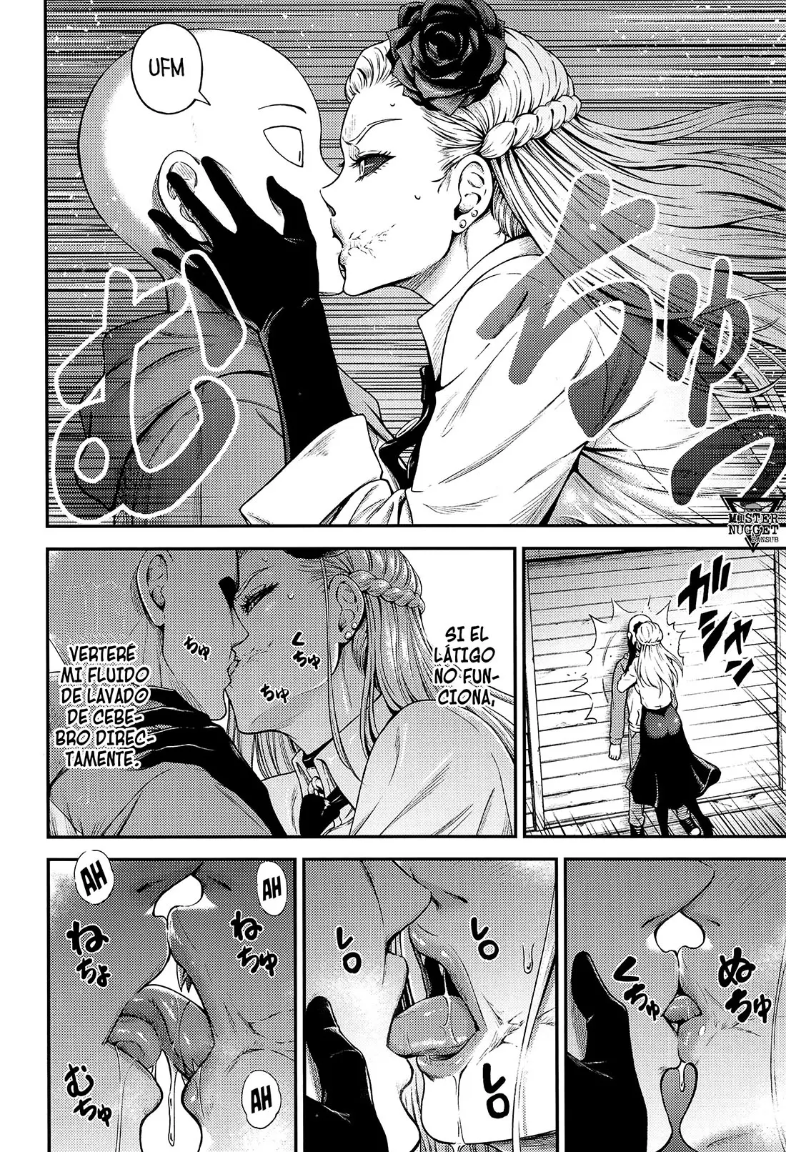 A Do-S solo le queda un último recurso, mostrarse lasciva para ofrecerse sexualmente. Abriéndose los labios de su coño para que él pueda follarla y así caer bajo su control. Ninguno que haya puesto su pene allí ha podido resistirse. Lo cual no deja muy impresionado a Saitama. Pero solo para complacerla, la toma por la espalda y folla su coño. Lo que sorprende a la chica, porque no puede creer que alguien con esa cara pueda hacerla acabar. Gracias a eso, su jugo del amor está desbordando su cuerpo.