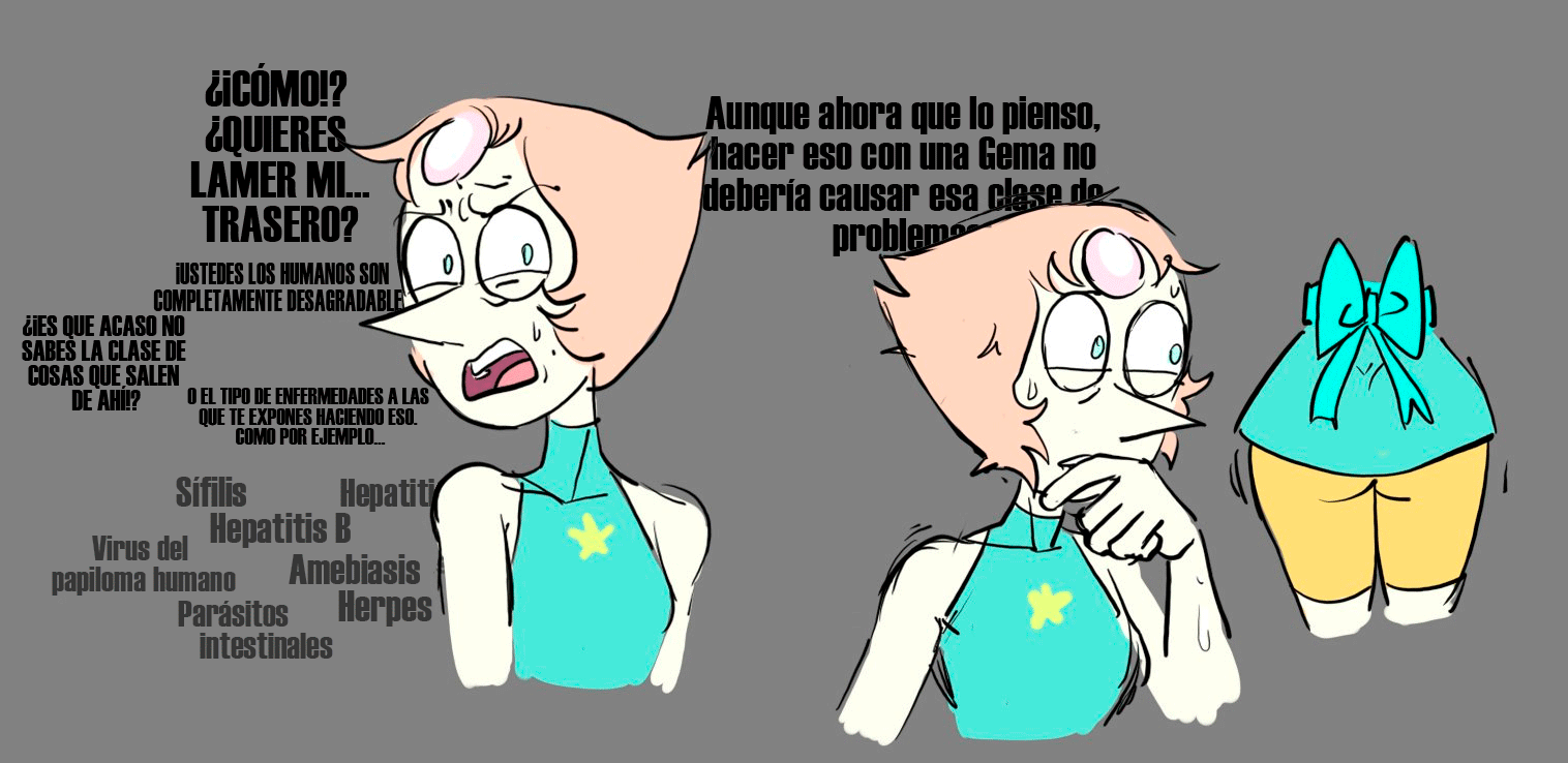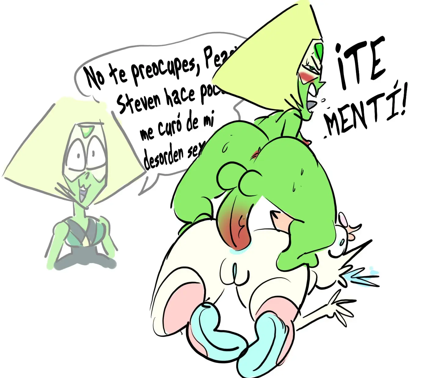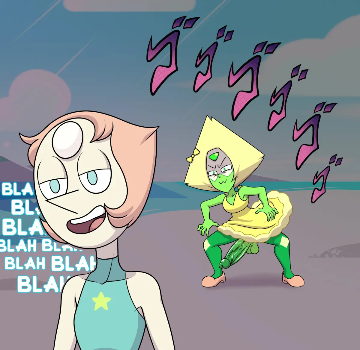 A Peridot le gusta mucho Perla, por lo que usando su gran polla tiene sexo con esta gema. Así descubrimos rápidamente de que se trata de un comic de Futanari, donde las chicas se lo pasan bien con este detalle no menor para una historia de mujeres. En donde no puede faltar una verga para tener un poco de penetración, en especial entre ellas dos que se nota que se atraen mucho. Por nuestra parte, no queremos perdernos algo como esto, porque siempre nos gustan ver a dos gemas tener sexo en Steven Universe.