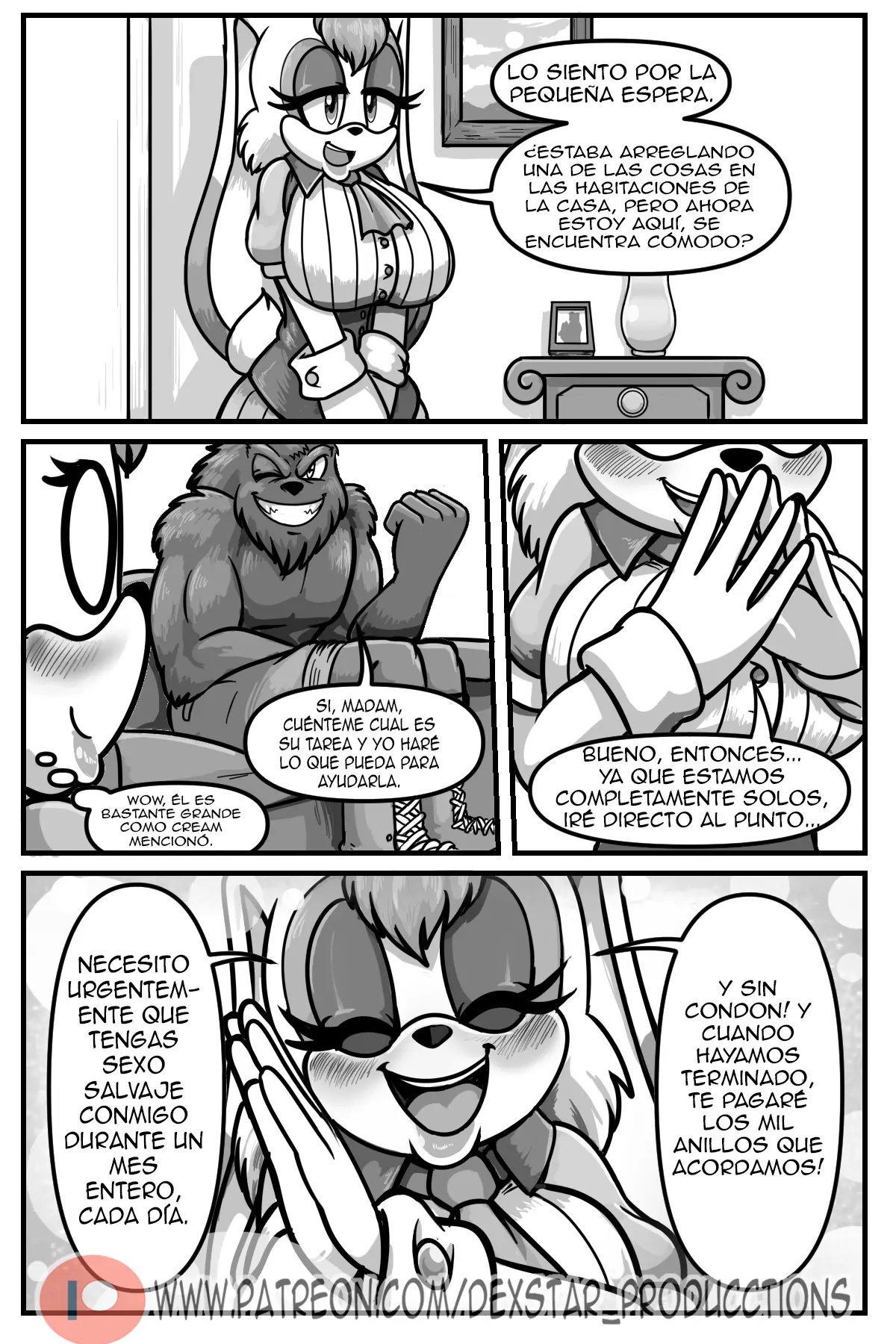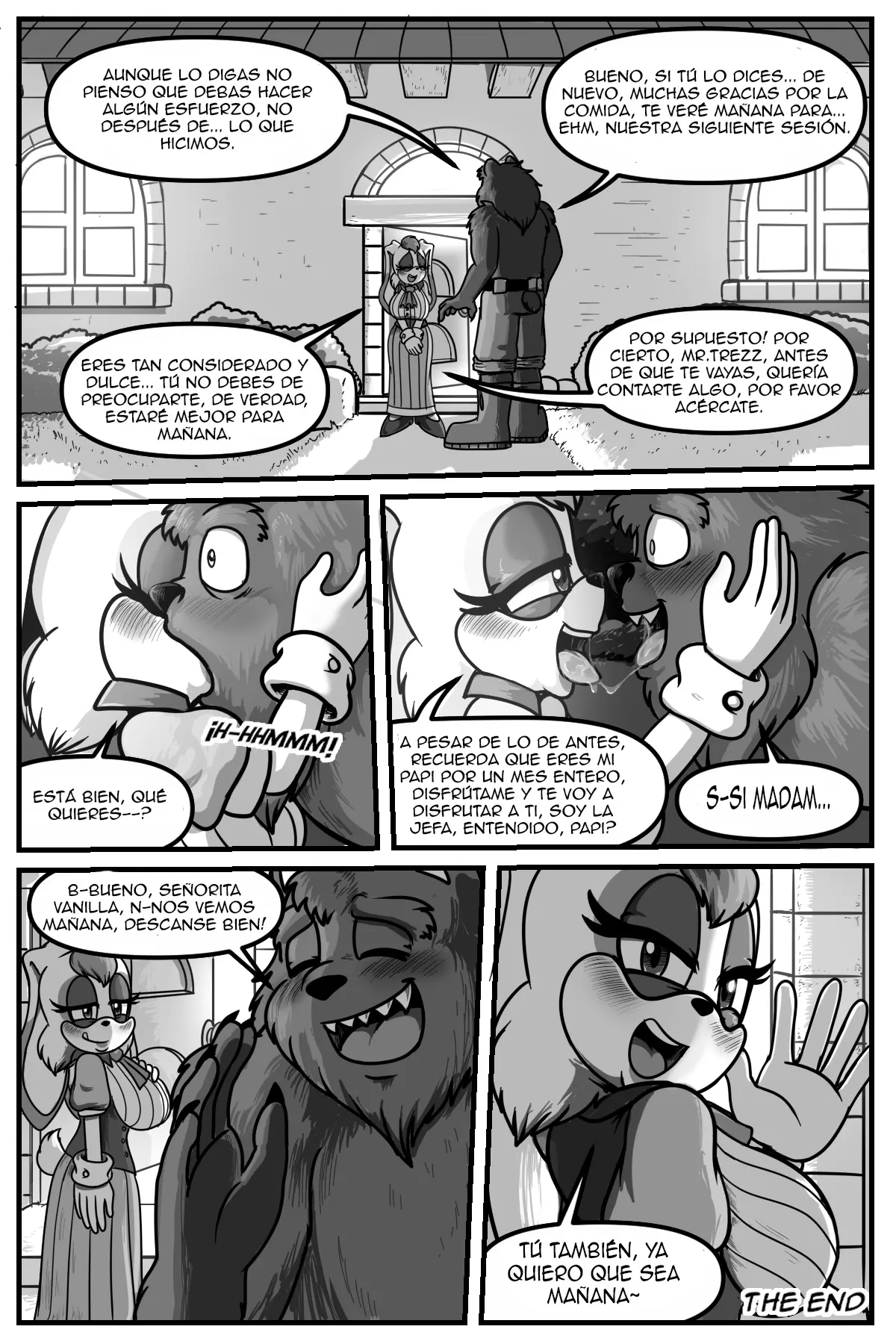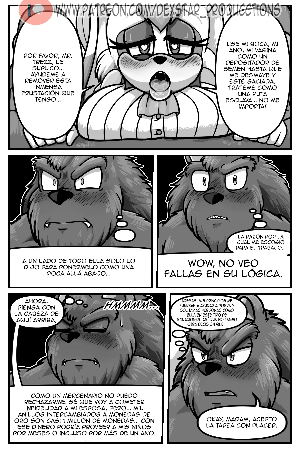 Trezz acudió de inmediato a la casa de la señora Vanilla y se sentó a esperar que esta terminara sus quehaceres. Vanilla va completamente al grano, sin ningún rodeo. Necesita urgente que tenga sexo salvaje con ella durante un mes entero, cada día. Y sin condón, y cuando hayan terminado, le pagará los mil anillos que acordaron.