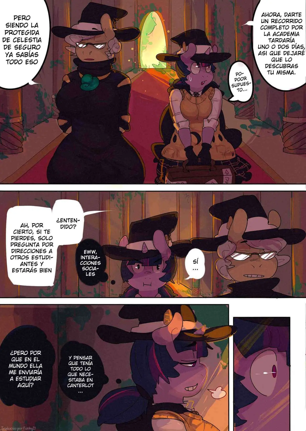 Este año llego una nueva alumna Twilight, la protegida de Celestia. A quien ya le han asignado una habitación, la 107. Al llegar allí encuentra la habitación con varias cerraduras. Por lo que comienza a buscar en un libro alguna fórmula de desbloqueo, logrando hacer magia a la cerradura y pidiéndole que se abra.