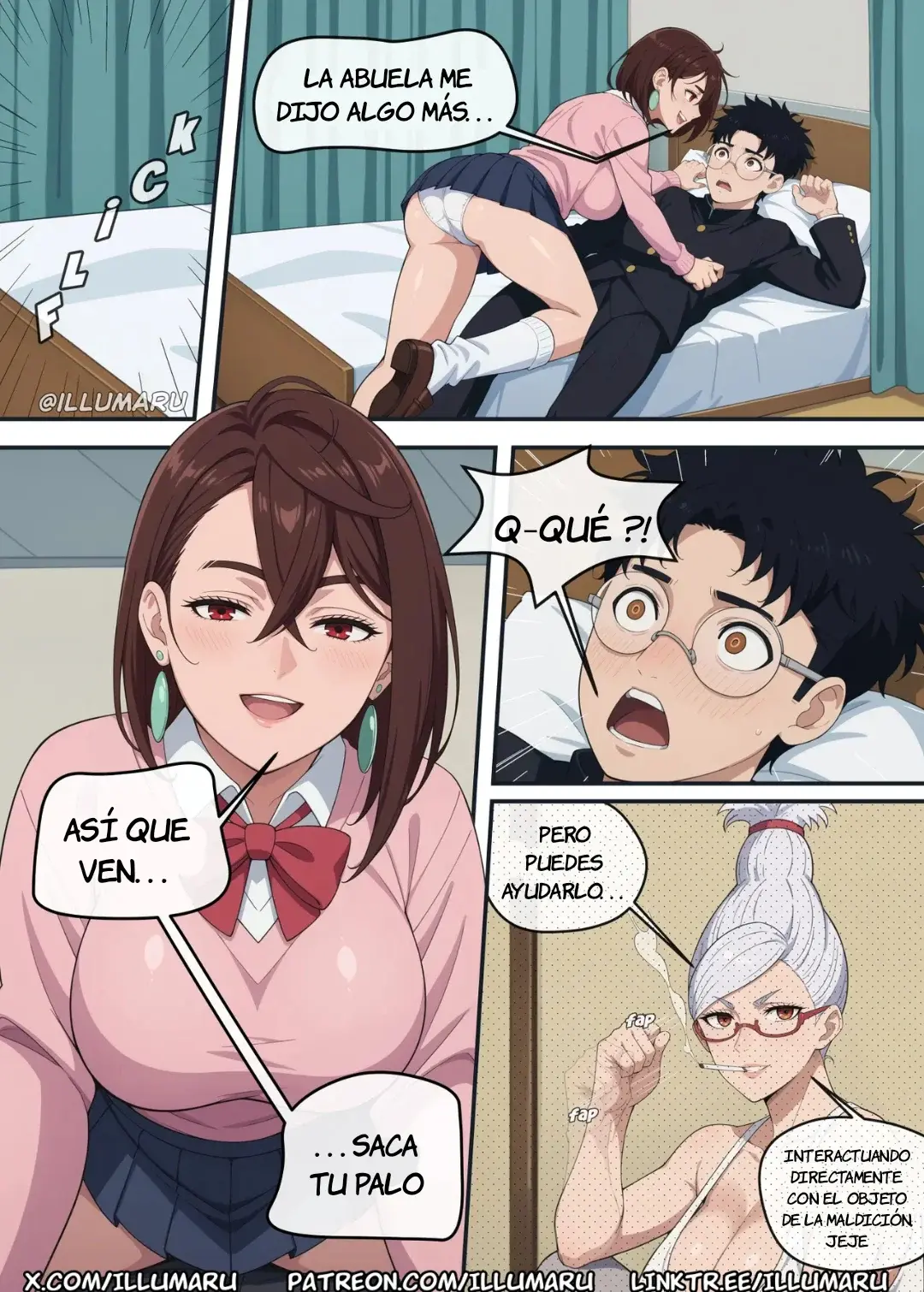 Pero la abuela le había dicho algo más. Y ese algo más necesita que Okarun este sobre la cama. Algo para lo cual necesita que el chico saque su palo. Es que según Seiko, la nieta puede ayudarlo interactuando directamente con el objeto de la maldición.