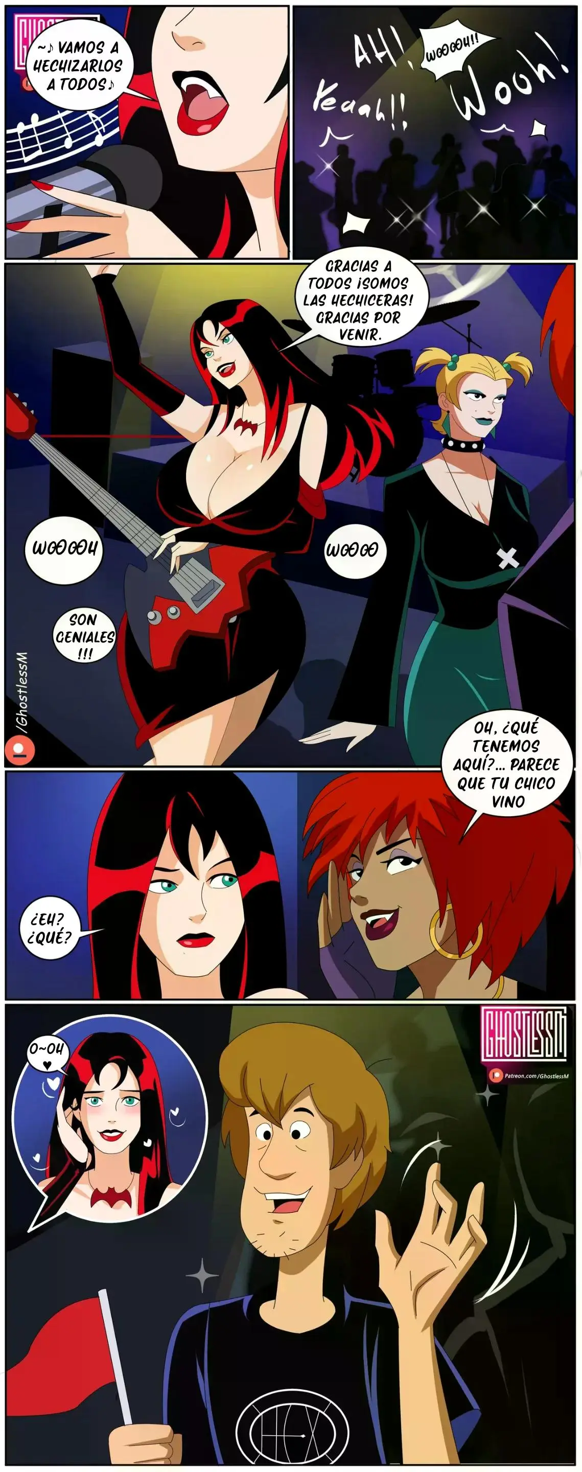 Thorn, la cantante de Hex Girls, está terminando su recital cuando una de sus compañeras le dice que Shaggy ha ido a verla. Ella no puede creerlo, porque pensaba que pasaría la noche resolviendo algún misterio con los chicos. Pero él no quería perderse esto por nada del mundo. Por eso ella lo invita al vestidor para darle un concierto privado. Shaggy tiene un poco de vergüenza, pero cuando ella le dice que tiene pizza no lo duda más.