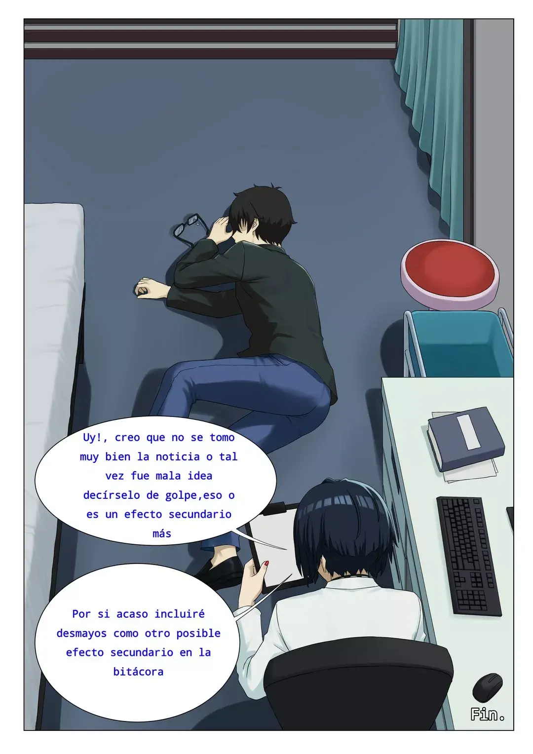 Semanas más tarde recibe una llamada de la doctora que le pide pasar por su consultorio. Ella quiere hablar de un asunto, de lo que sucedió entre ellos hace un par de semanas. Él no recuerda nada, lo que podrían ser los efectos secundarios de la píldora.