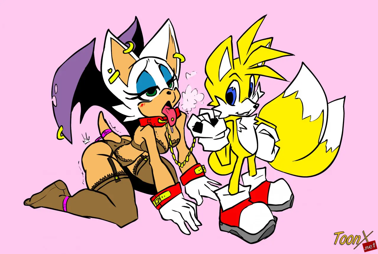 Tails ha quedado con tantas ganas que se imagina llevando a Rouge con un collar y correa, mientras esta lleva lencería y medias de portaliga. O completamente desnuda y con un bozal en su boca y unas cadenas en sus muñecas, mientras que de su coño chorrea de lo mojada que está.