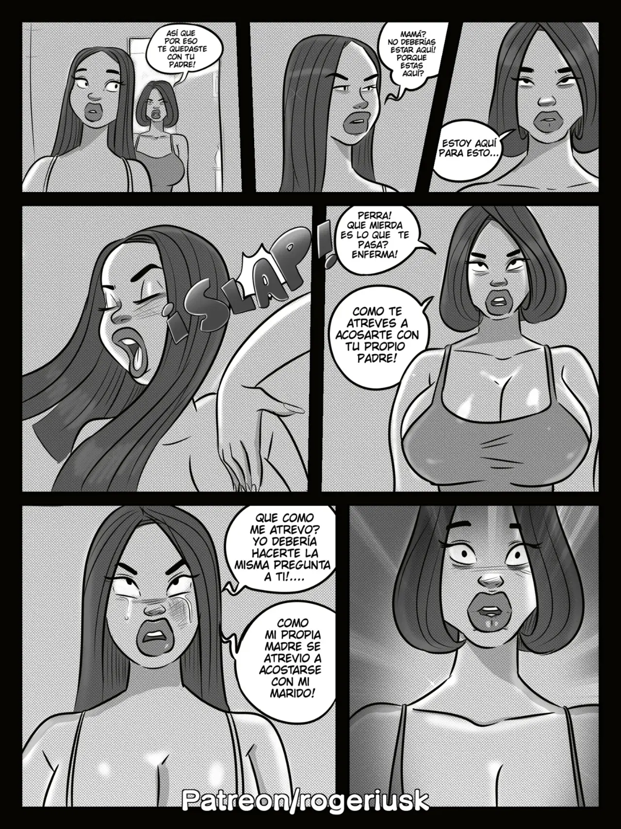 Sin embargo, cuando el padre comienza a hacerle sexo oral y ella le pide que se la coma toda, la madre ha llegado a la casa y los encuentra en la cama. Ella no dice nada, pero cuando la hija sale de la habitación la confronta con una bofetada. Aunque la hija también tiene con que confrontarla, porque sabe muy bien que ella se ha acostado con su marido. Lo que hace llorar a la madre. Algo que a la hija no le importa, porque solo piensa en atender a su padre como se merece.