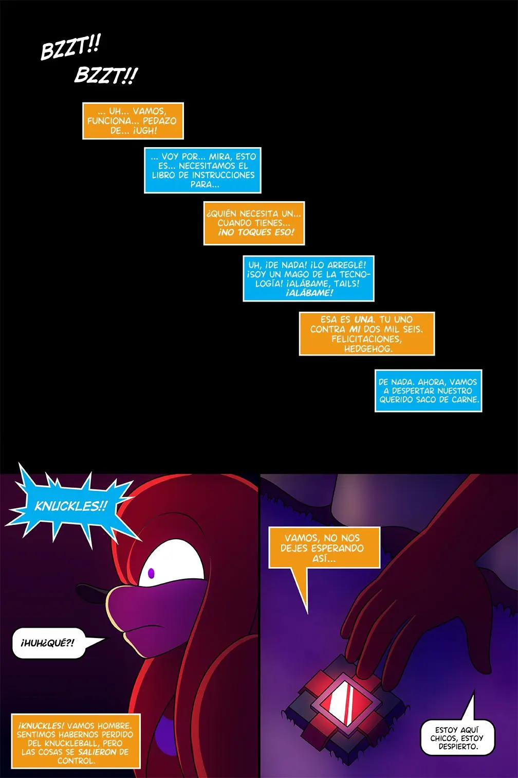 Knuckles parece estar teniendo algún problema de autoestima porque no deja de mostrar sus brazos y querer mostrar lo atlético que es. Aunque diga que es bastante seguro de sí mismo, no parece que lo estuviera siendo.