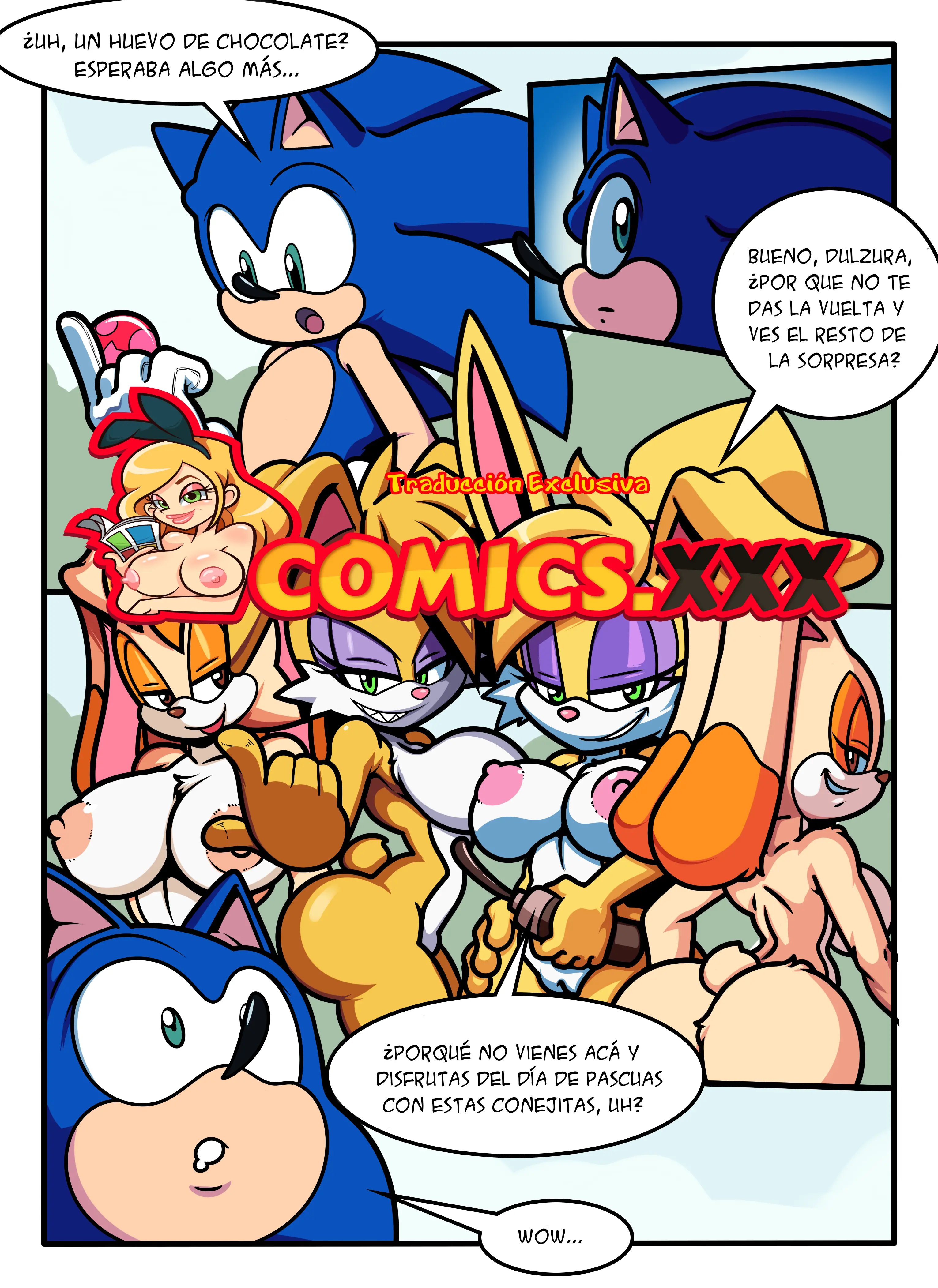 Parece que estamos en las festividades de Pascua y Sonic ha encontrado un huevo de chocolate, aunque se esperaba algo más. Bunnie lo invita a que se dé una vueltita y busque el resto de las sorpresas, mientras pasa el día de Pascuas con las conejitas.
