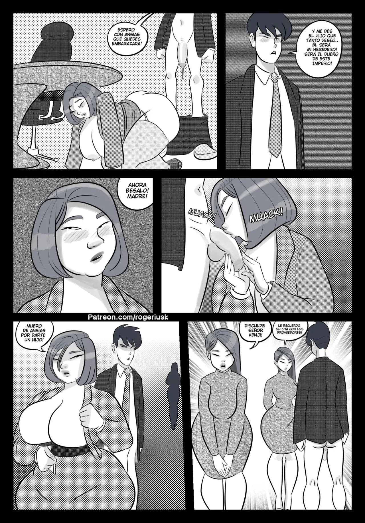 En la sala de conferencia, el hijo piensa en su padre y como nunca amo a su madre. Siempre estaba trabajando, por eso ahora él se encarga de darle lo que ella se merece. Poniéndola apoyada contra la mesa y follándola. Que cuando lo hace, le dice que ella es su puta y es mejor que nunca lo olvide. Ella también le dice que es su zorra, mientras el semen sale de la polla de su hijo para llenarla. Quien espera con ansias que ella se quede embarazada de su propio hijo. Aunque antes de irse, tiene que darle un beso en su verga como despedida.