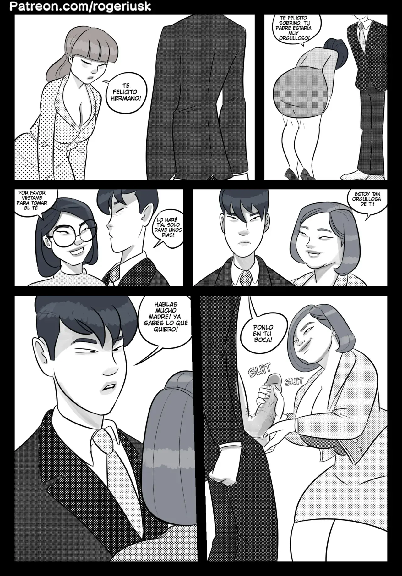 Una madre escucha atenta el discurso de su hijo en la reunión de la empresa familiar. Quedándose para lo último y diciéndole lo orgullosa que está ella de él. Pero el hijo no quiere que hable, quiere otra cosa de ella. Por eso le pide que se lo ponga en la boca luego de sacarlo del pantalón. Así la madre se pone de rodillas a hacerle una mamada en el salón de conferencias de la empresa.