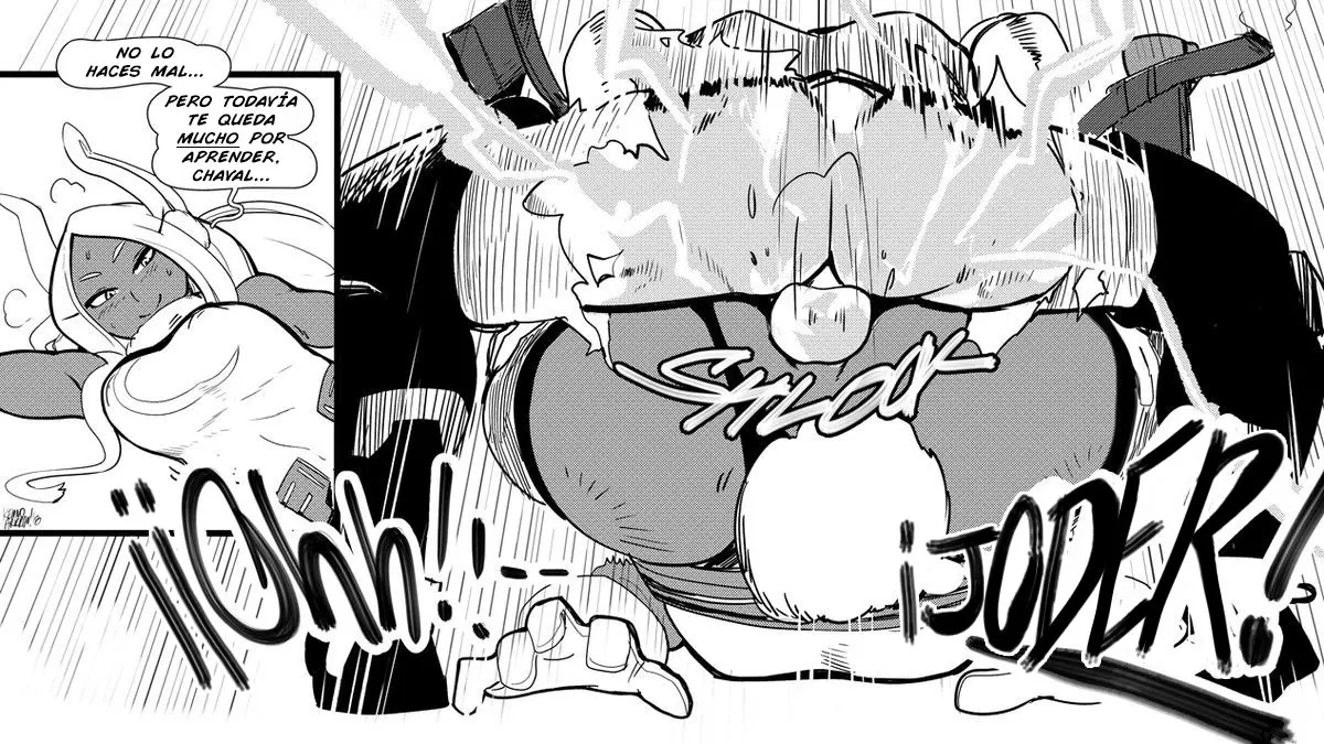 Para ella no lo hace nada mal, pero todavía tiene mucho que aprender. Pero resulta que no fue tan bueno decirlo, porque él termina rompiéndole más el culo gracias a todo lo que ha practicado con Midnight, lo cual lleva a que Mirko sufra con los embiste de Deku.