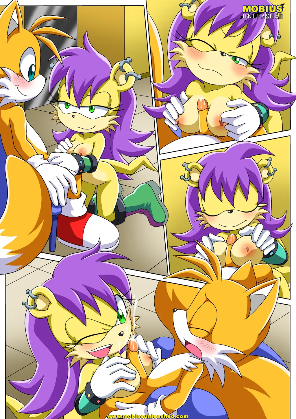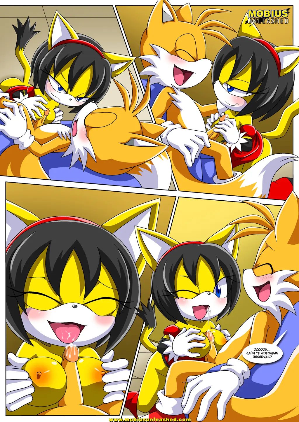 Todas las invitadas allí desnudan sus pechos y hacen fila para poder agasajar a Tails: Blaze, Lanolin, Fiona…