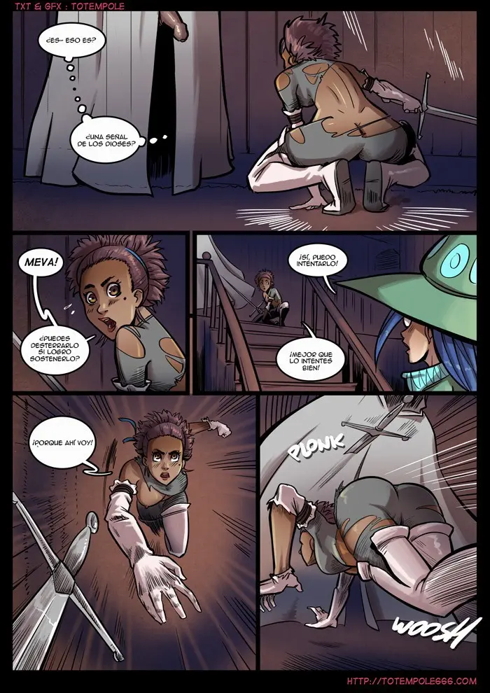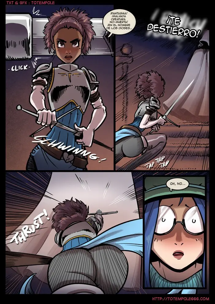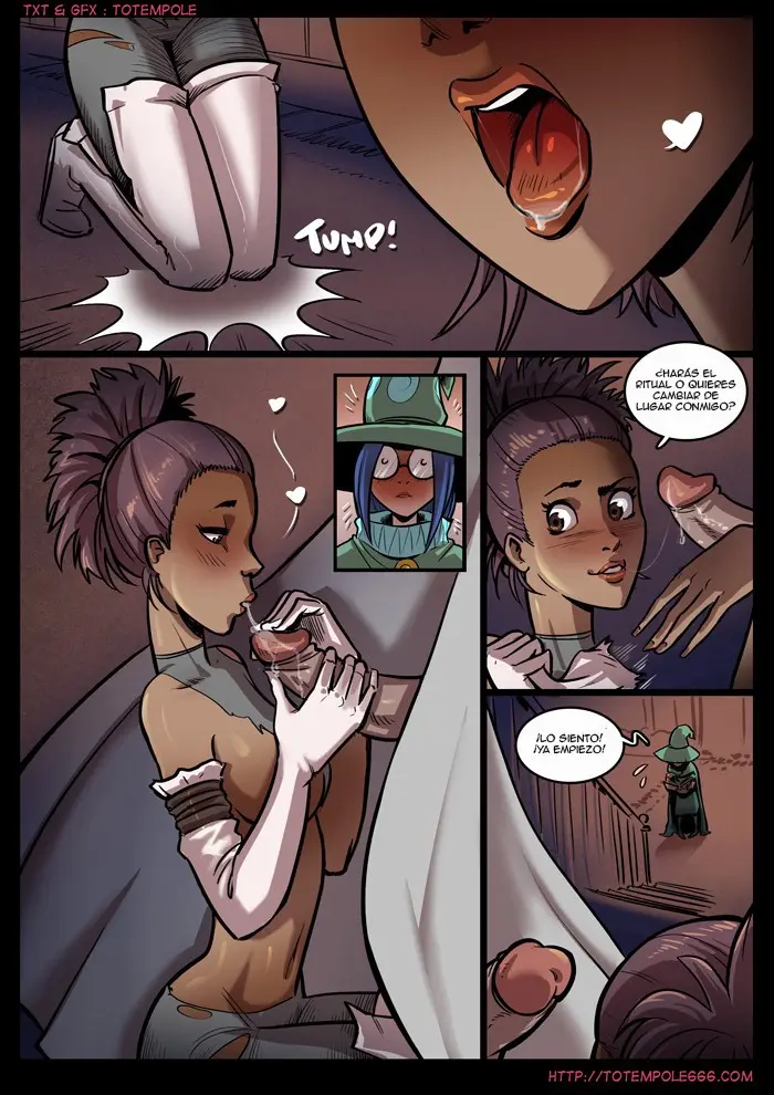 Spoka le pide a los antiguos dioses que la ayuden, y así nuevamente se enfrenta a este pervertido fantasma. El fantasma se hace material y de su capa que cubre toda su forma puede ver un gran pene muy erecto y grande. Si Spoka lo mantiene material, Meva podrá desterrarlo de este mundo. Por lo que Spoka se arriesga y tomando su polla con fuerza, y se tira sobre él.